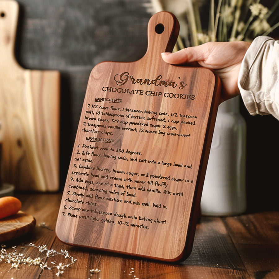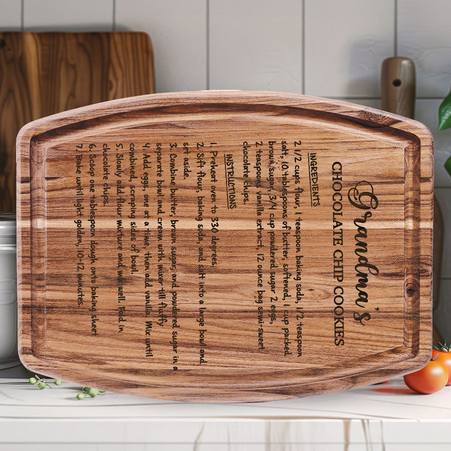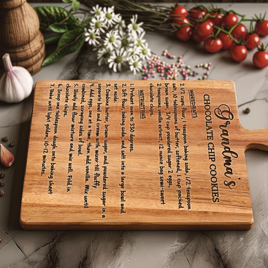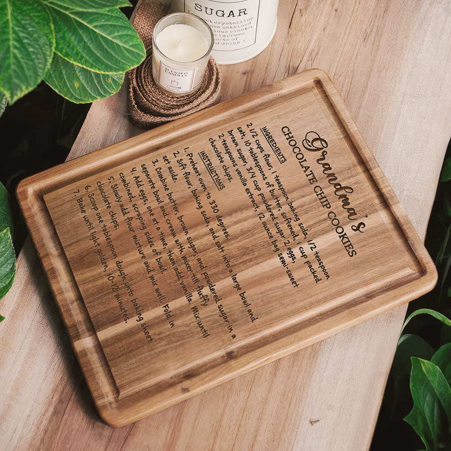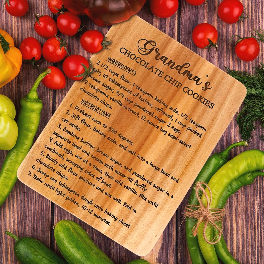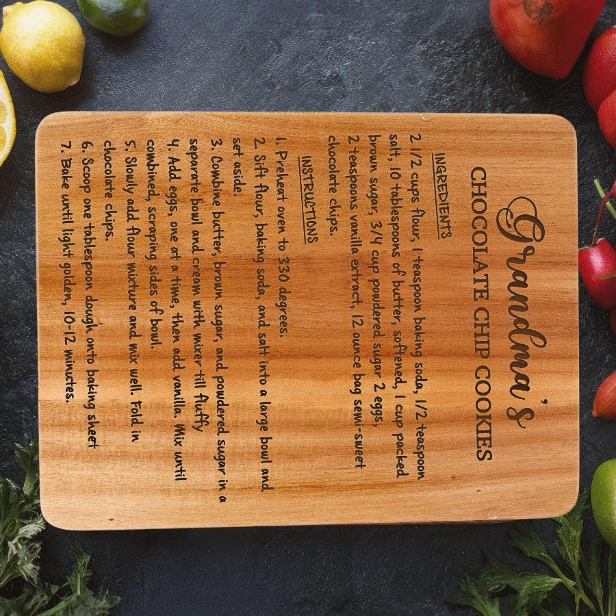Celebrate grandma's love this Mother's Day with our custom engraved hardwood cutting board - grandmaâs recipe on a cutting board that keep on giving with functionality, beauty and memories for years to come. Personalize it FREE now for a treasure she will always cherish.