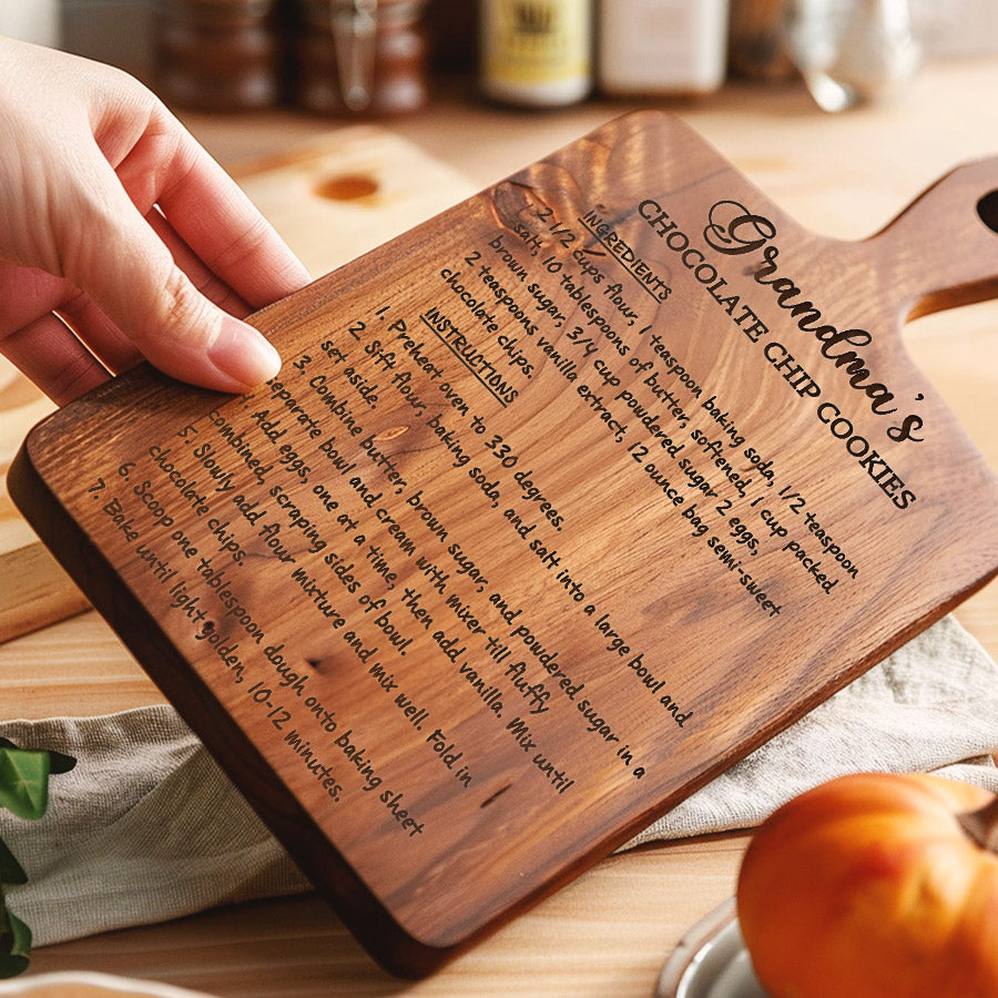 This outstanding hardwood cutting board makes the perfect grandmaâs recipe on a cutting board to commemorate her special day and all the memories she's helped make throughout the year.