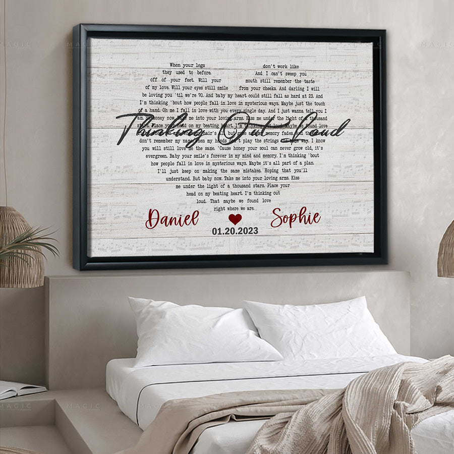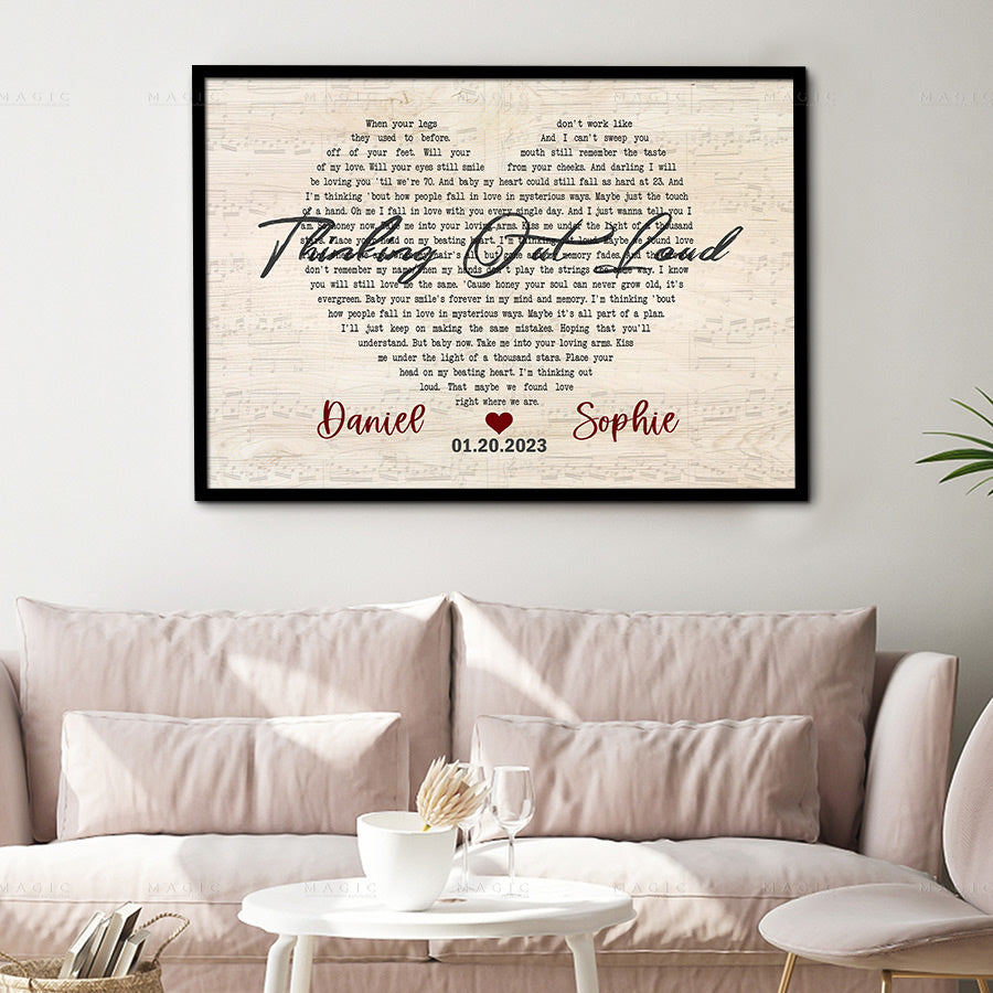 A song lyrics on canvas is sure to be the perfect gift for the other haft on any occasion, esspecially anniversary gift, as it reminds the very first monent you two are together. This heart shaped song lyrics canvas is a special one with personalization on it, you can add your name with custom song on design. Your partner will cry tears of happiness!