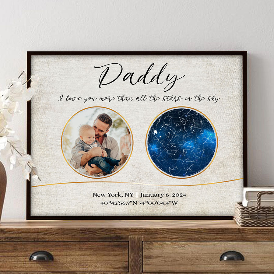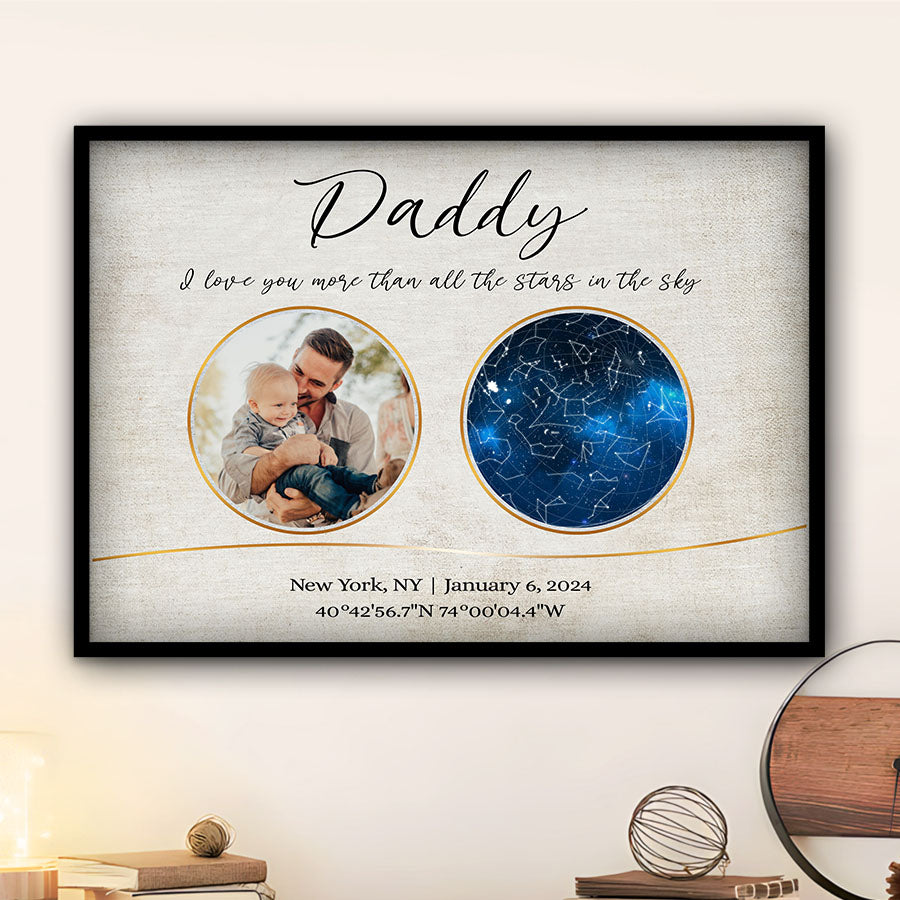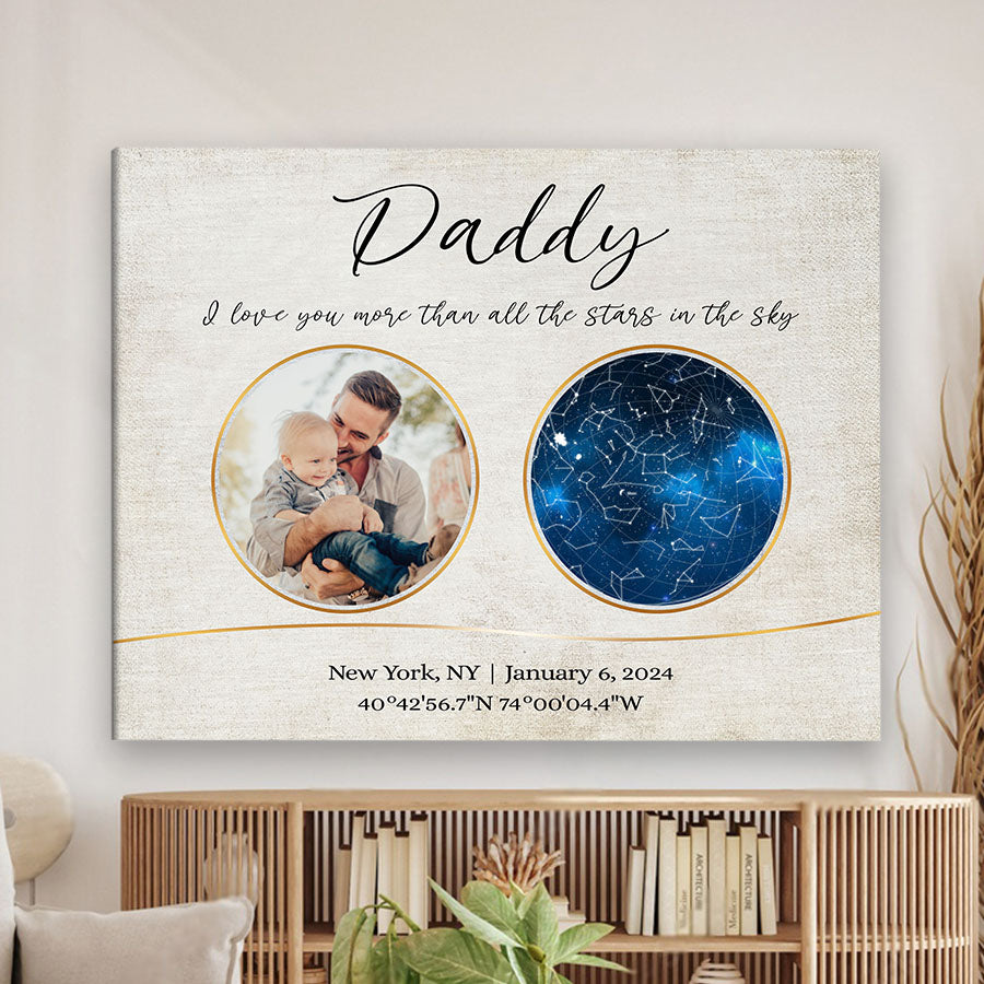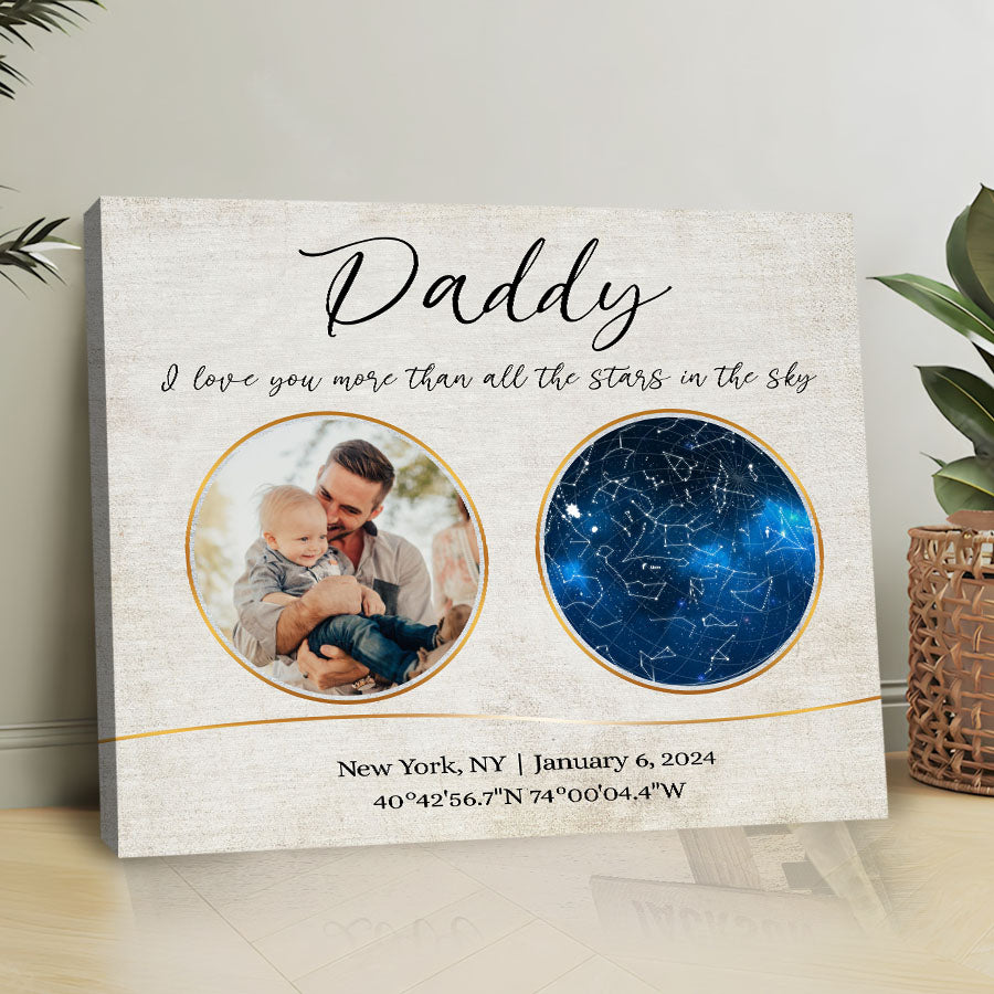 Our personalized canvas décor makes the perfect i love you more than all the stars in the sky | personalized 1st fathers day gifts. For a new father, nothing compares to the joy, love, and responsibility that comes with embracing his new role.