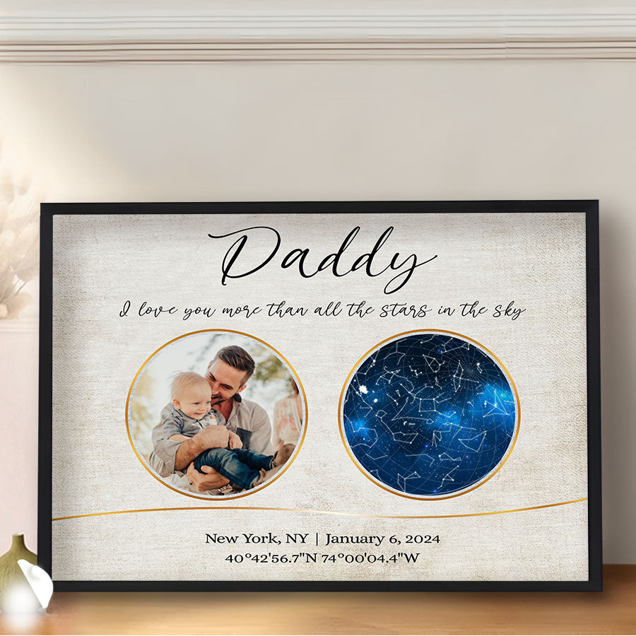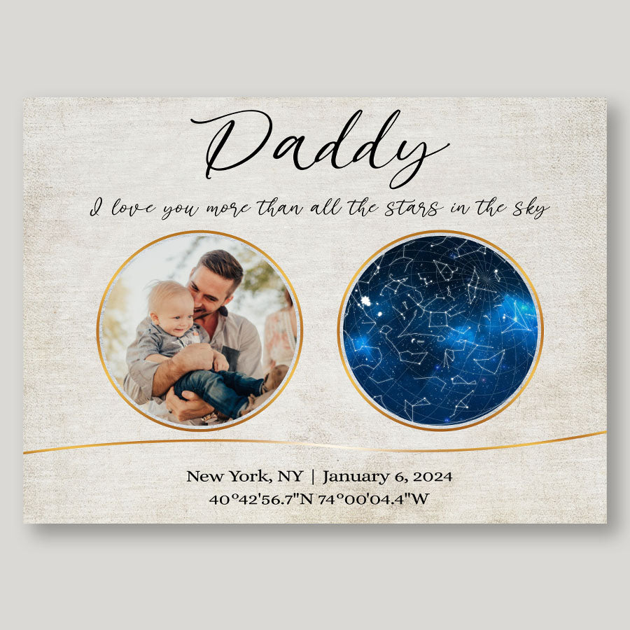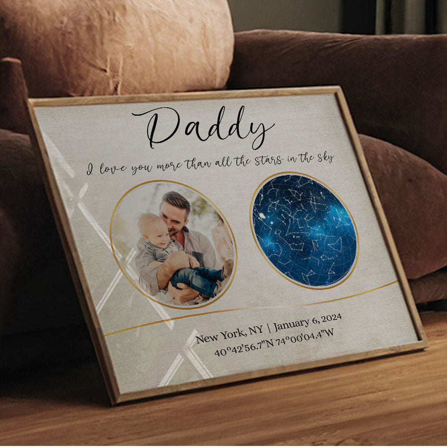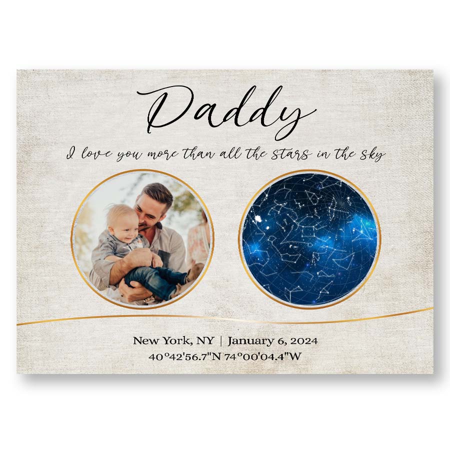 Our personalized canvas décor makes the perfect i love you more than all the stars in the sky | personalized 1st fathers day gifts. For a new father, nothing compares to the joy, love, and responsibility that comes with embracing his new role.