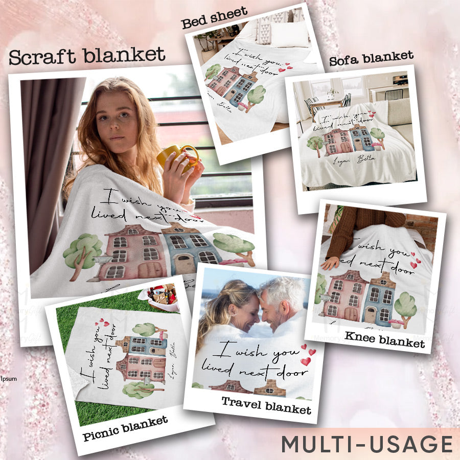 I Wish You Lived Next Door Blanket | Custom Blankets For Best Friends | Gift For Long Distance Friend