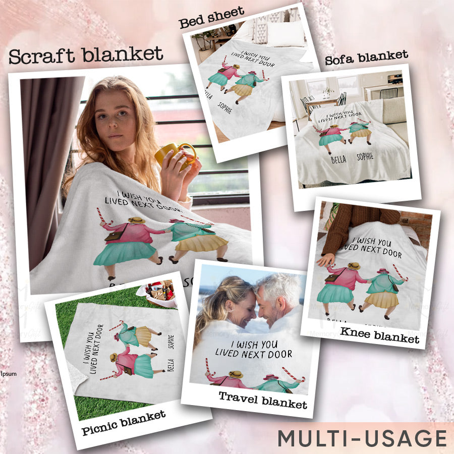 Spread the warmth of friendship with i wish you lived next door blanket | custom blankets for best friends. In our busy lives, it's easy to feel disconnected from loved ones. However, studies show that feeling socially supported reduces stress and promotes well-being. This cozy, luxurious blanket makes the perfect gift to remind someone you care. This blanket is one of the perfect Best Friends Christmas Ornaments and Christmas Gifts to show your best friend how much they mean to you. Give them this blanket like Personalized Christmas Ornaments will definitely brighten their whole holiday with so much love than ever.