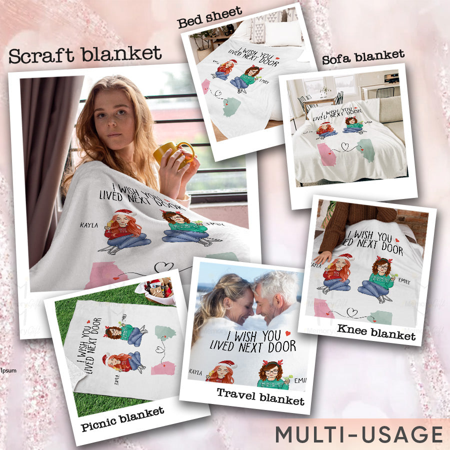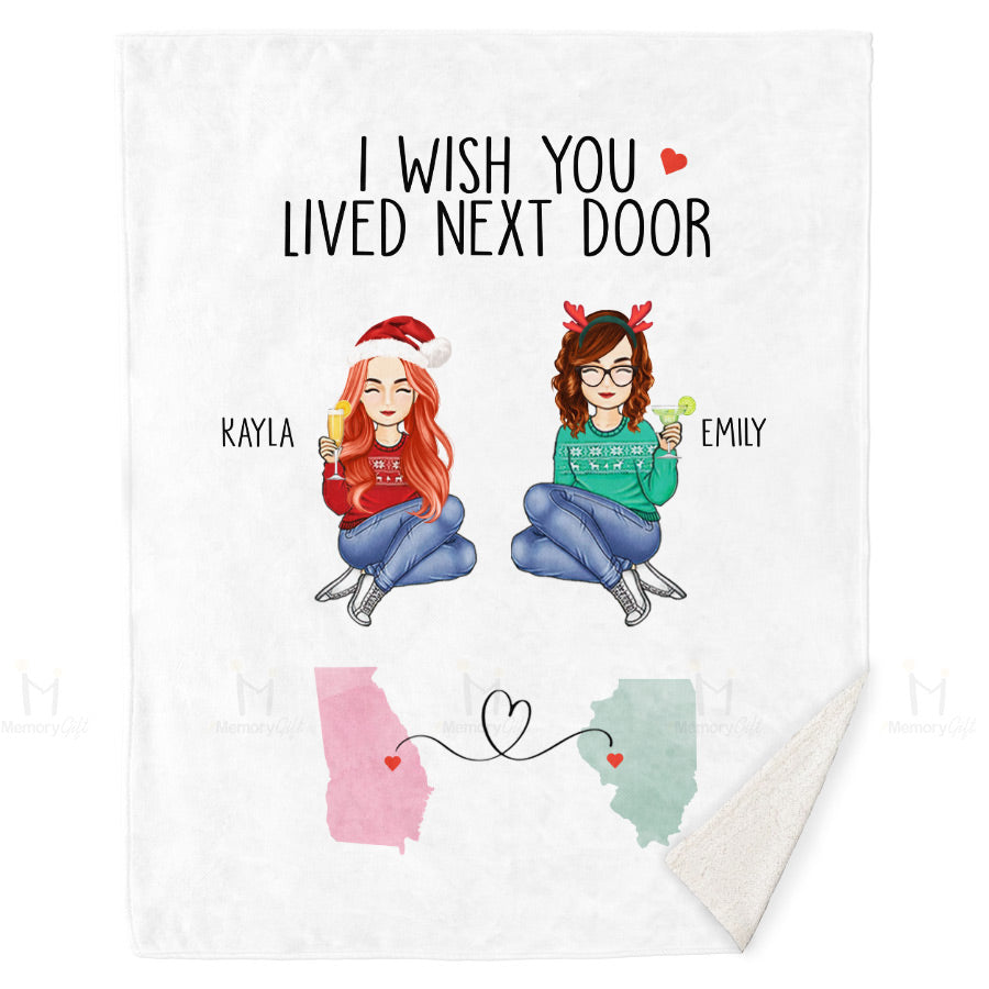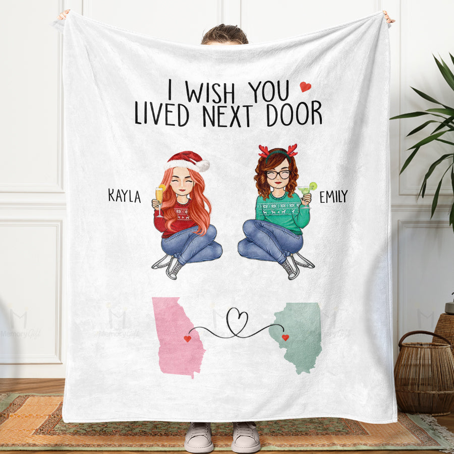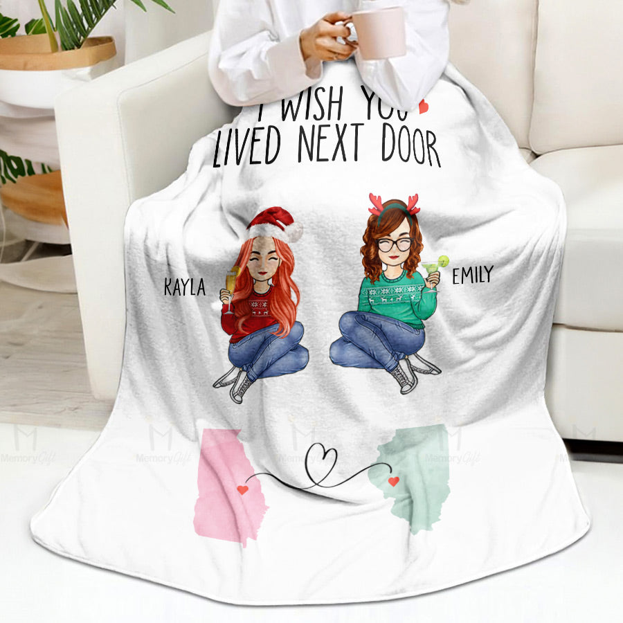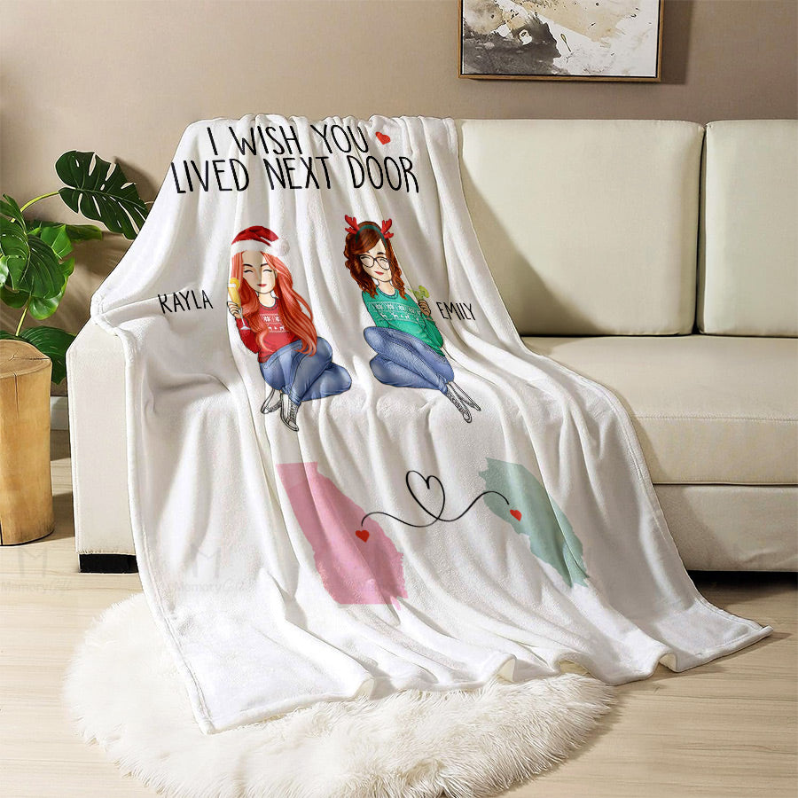 I Wish You Lived Next Door Blanket | Best Friend Personalized Blanket | Long Distance Friend Gift