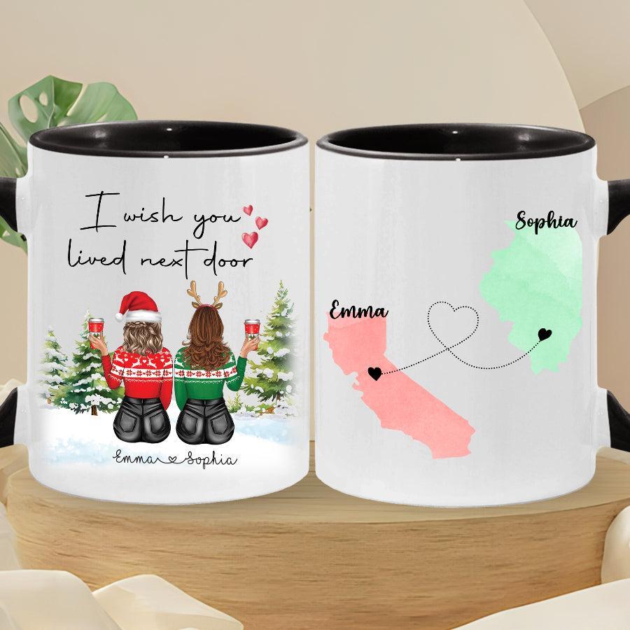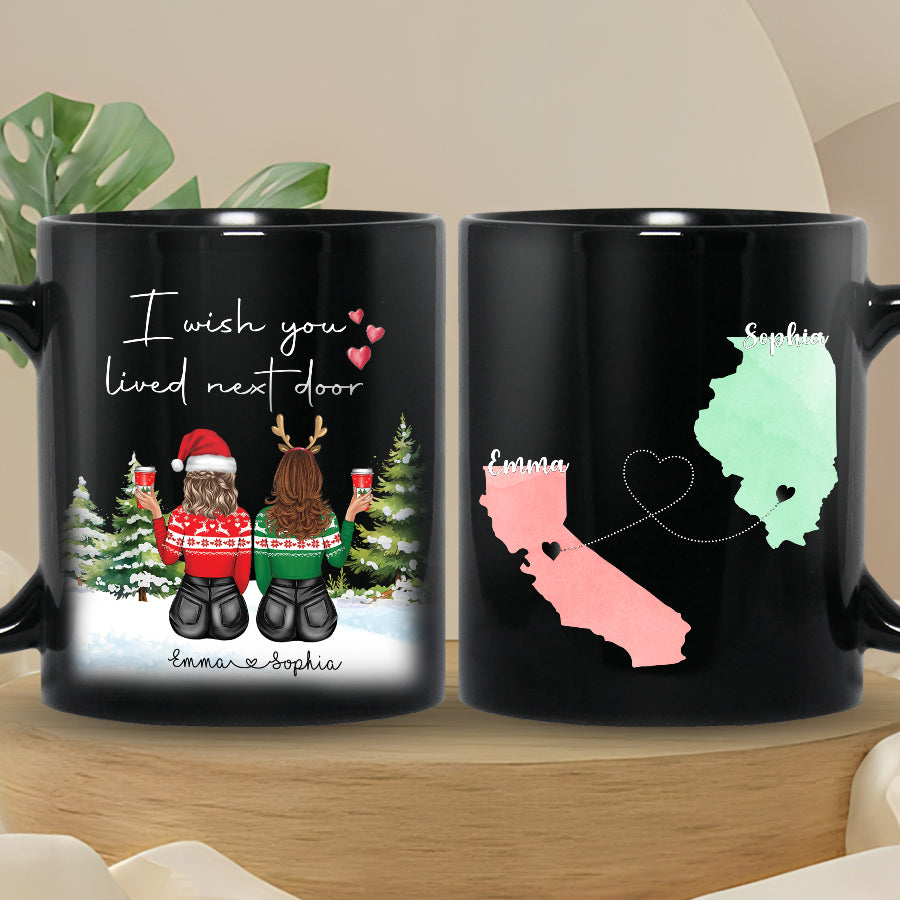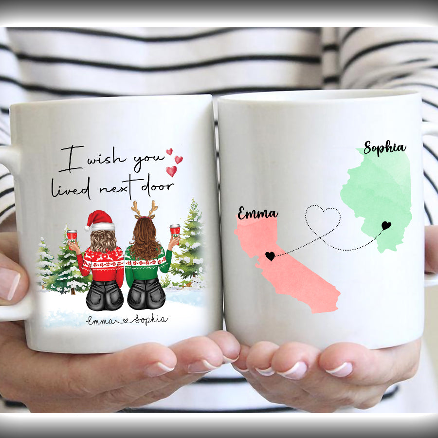 Start each day with the warmth of friendship by gifting i wish you lived next door coffee mug | personalized friend mugs. In our fast-paced world, losing touch with busy schedules is easy. However, strong social bonds are vital for physical and mental well-being. This personalized mug makes the perfect pick-me-up to let someone special know you're thinking of them. This mug is one of the perfect Best Friends Christmas Ornaments and Christmas Gifts to show your best friend how much they mean to you. Give them this mug like one of the Personalized Christmas Ornaments will definitely brighten their whole holiday with more love than ever.