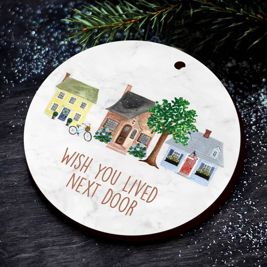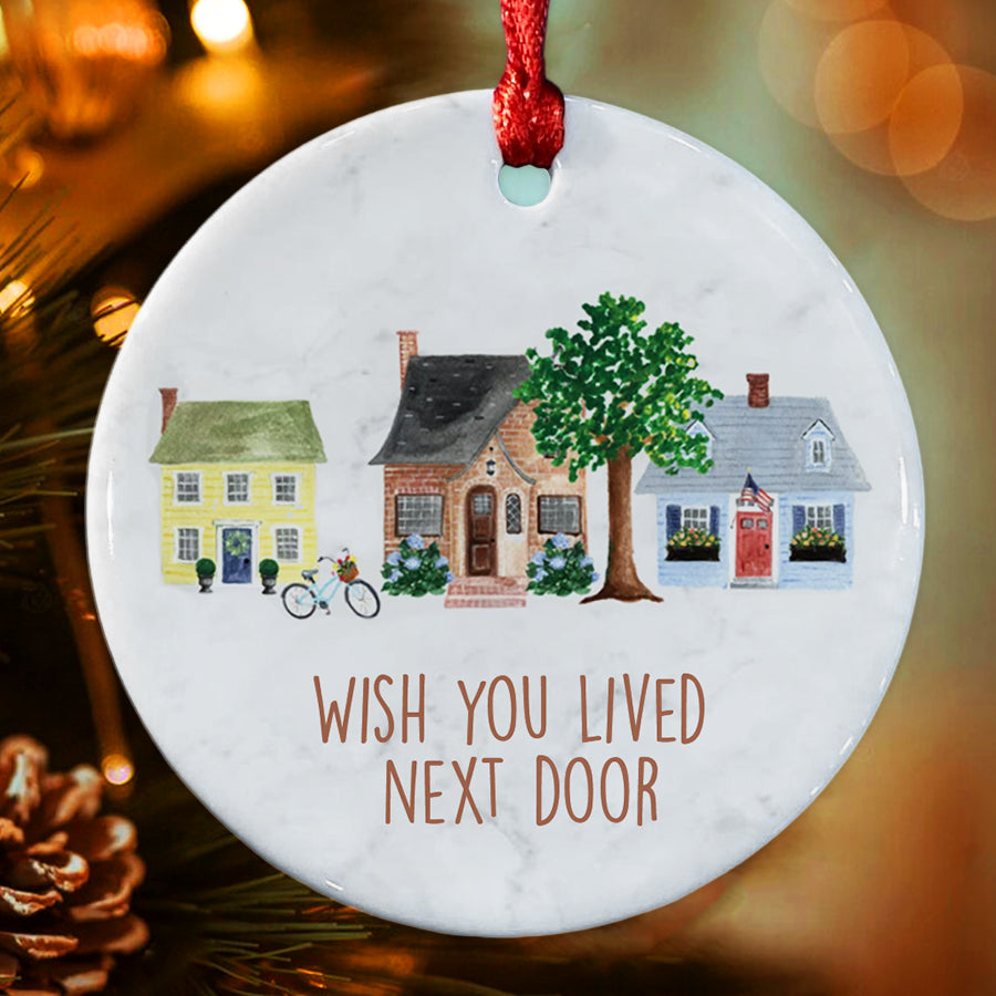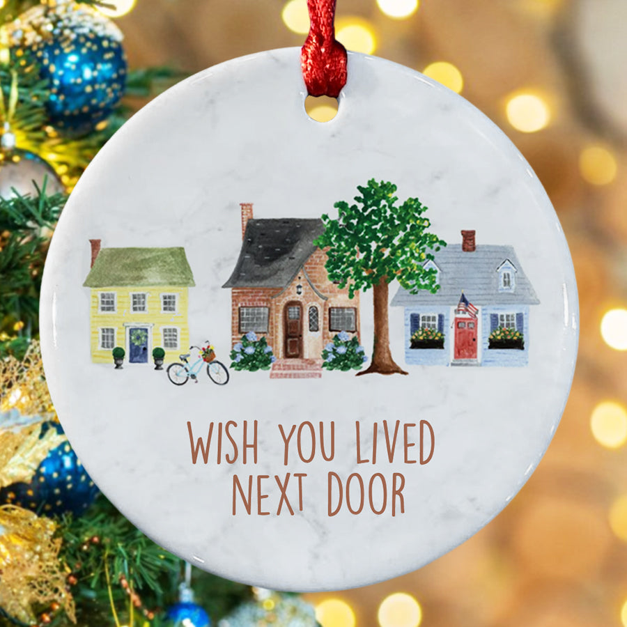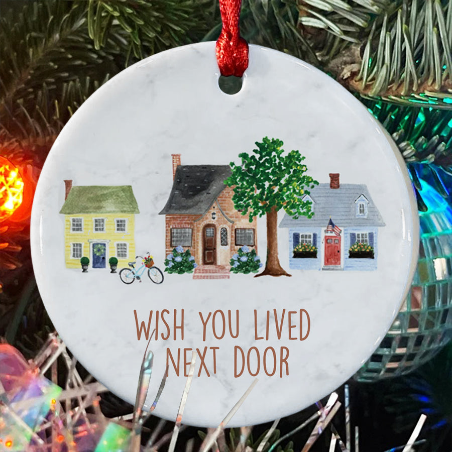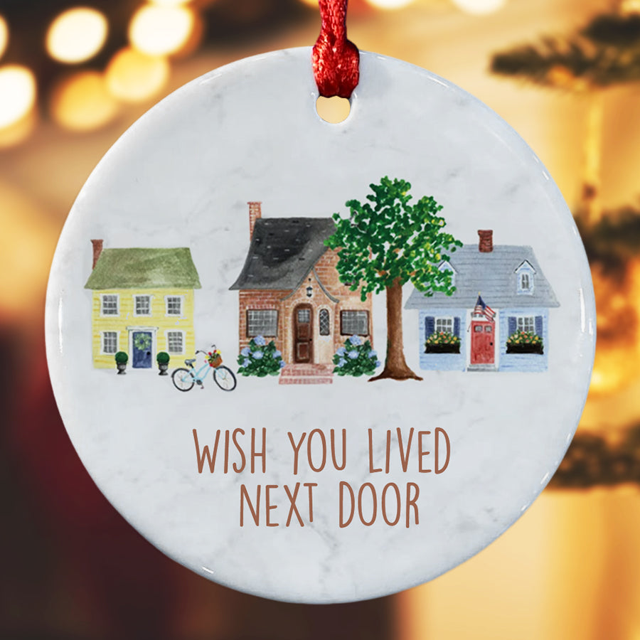 I Wish You Lived Next Door Ornament | Friend Christmas Ornaments | Long Distance Best Friends Ornament | White Ceramic Ornaments