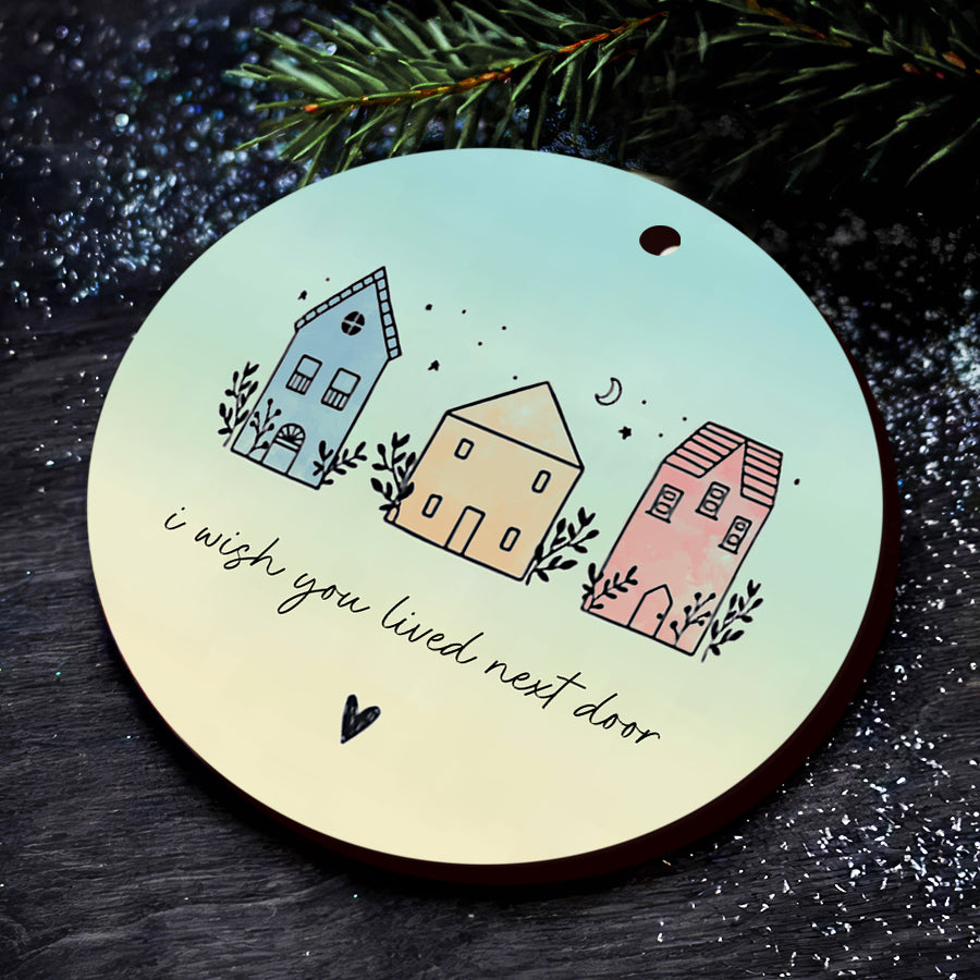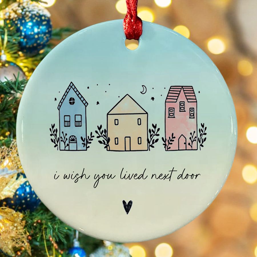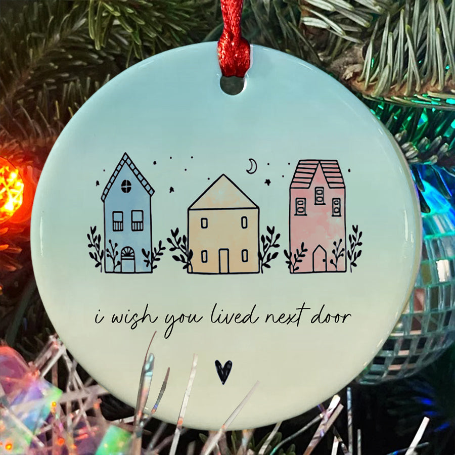 With i wish you lived next door ornament | 3 best friends ornament, you can celebrate and remember your special friendships each Christmas. These personalized ornaments allow you to showcase inside jokes, inside memories, or simply your friends' names for all to see on your holiday tree. Bringing smiles to your face each time you spot their ornament hanging among the branches. This ornament is a perfect Best Friends Christmas Ornaments to show your best friend how much they mean to you. Give them this Personalized Christmas Ornaments will definitely brighten their whole holiday with so much love than ever.