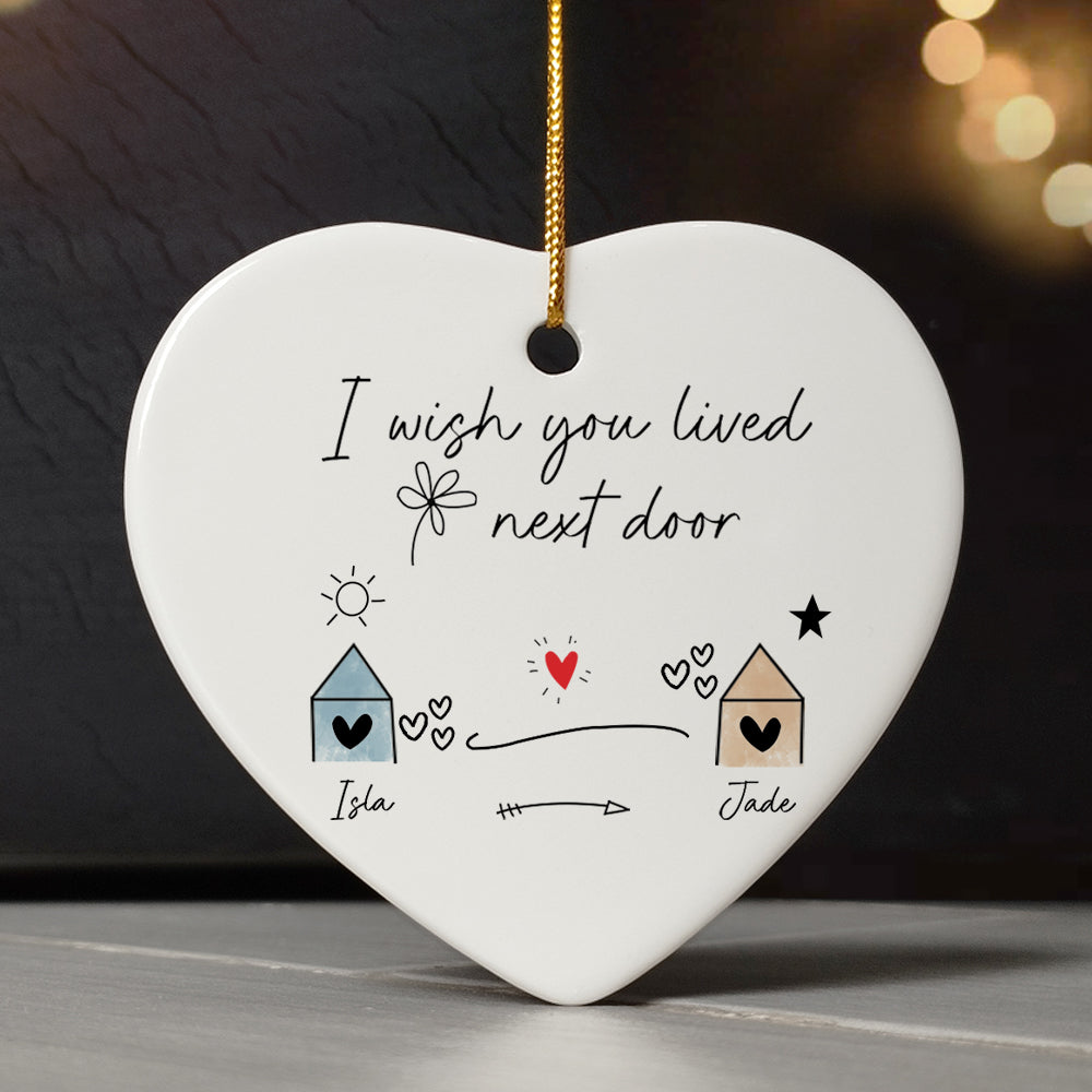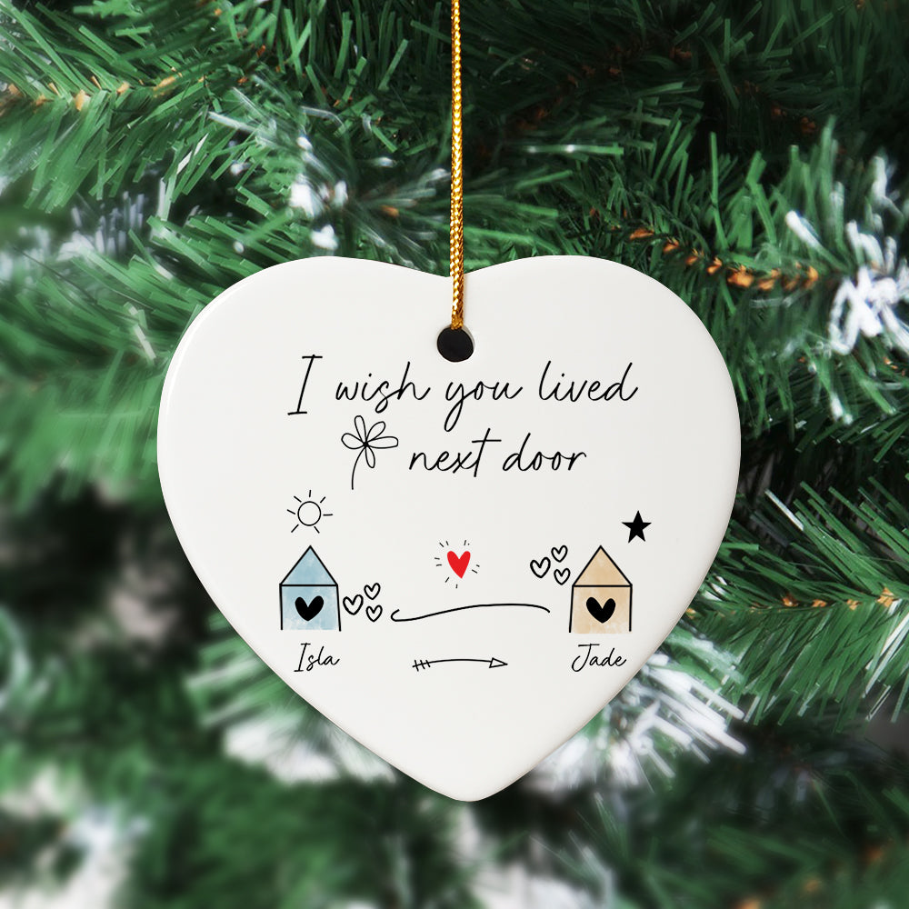 I Wish You Lived Next Door Ornament | Best Friends Christmas Ornament | Long Distance Friendship Ornament | Ceramic Heart Ornament