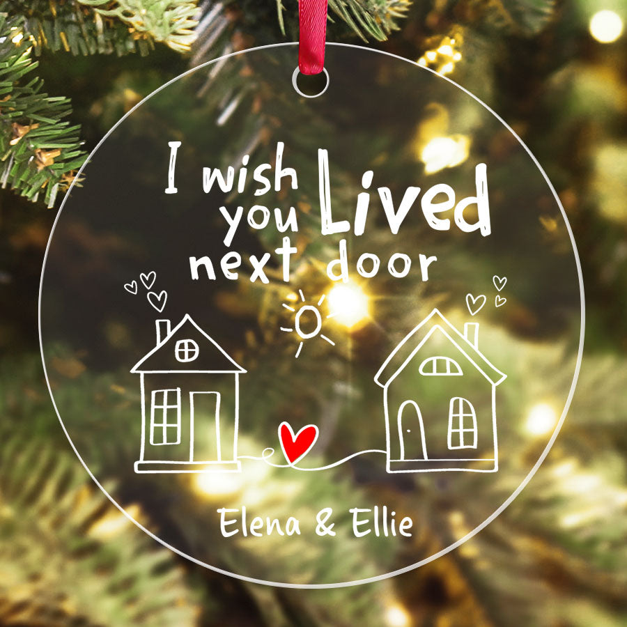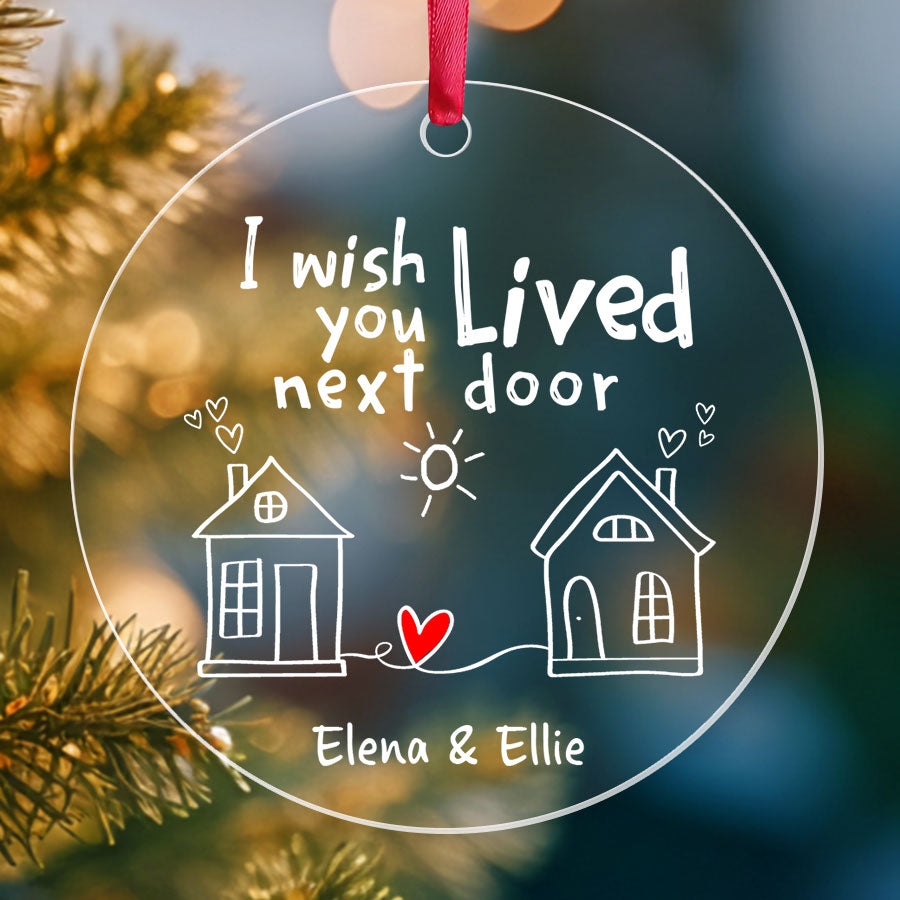 I Wish You Lived Next Door Ornament | Custom Friend Ornaments | Best Friend Christmas Ornaments | Acrylic Round Ornaments