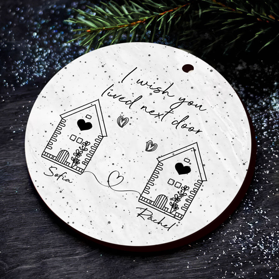 With i wish you lived next door ornament | custom best friend christmas ornaments, you can celebrate and remember your special friendships each Christmas. These personalized ornaments allow you to showcase inside jokes, inside memories, or simply your friends' names for all to see on your holiday tree. Bringing smiles to your face each time you spot their ornament hanging among the branches. This ornament is a perfect Best Friends Christmas Ornaments to show your best friend how much they mean to you. Give them this Personalized Christmas Ornaments will definitely brighten their whole holiday with so much love than ever.