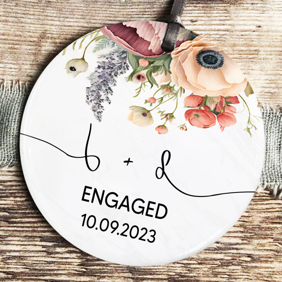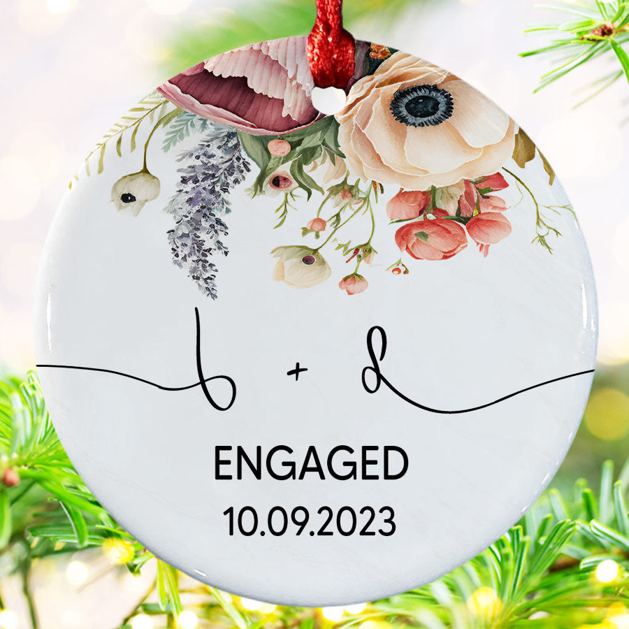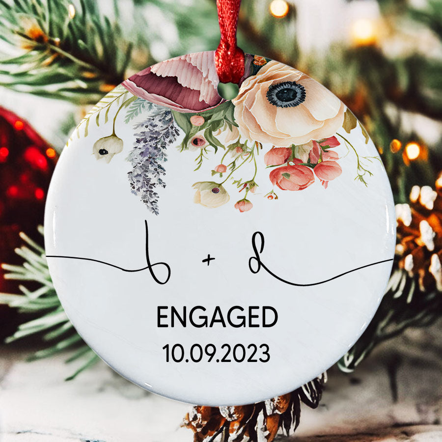 Engaged Ornaments | Custom Floral Ornaments For Bride To Be | Personalized Ceramic Ornaments