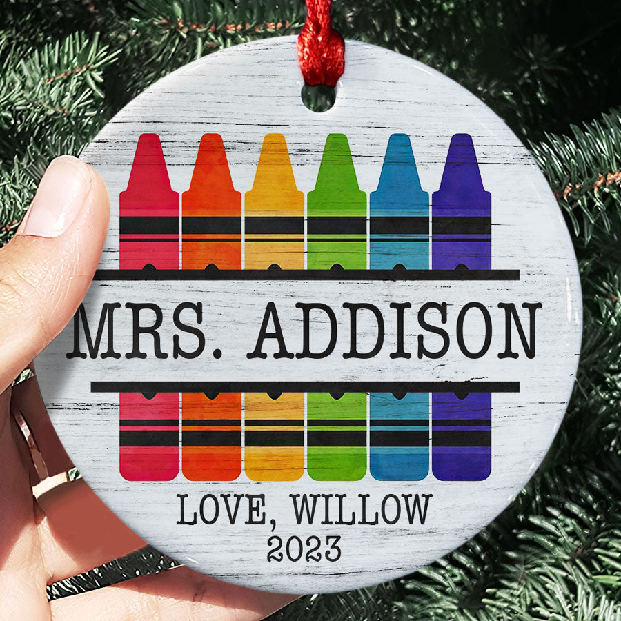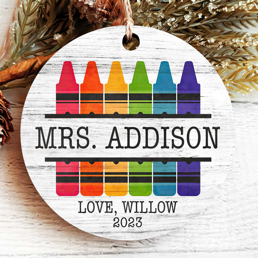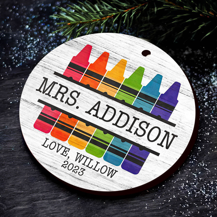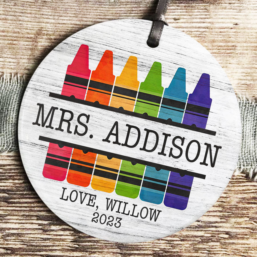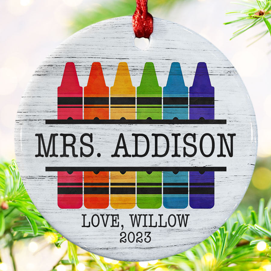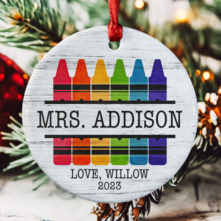 As a parent of a student, you know how much teachers impact our children's lives each day. Our kindergarten teacher ornament make a thoughtful way to honor the special educator who inspires your child. Rather than another generic teacher ornament, these personalized Christmas ornaments will hang on their tree all season long to remind them of the difference they make.