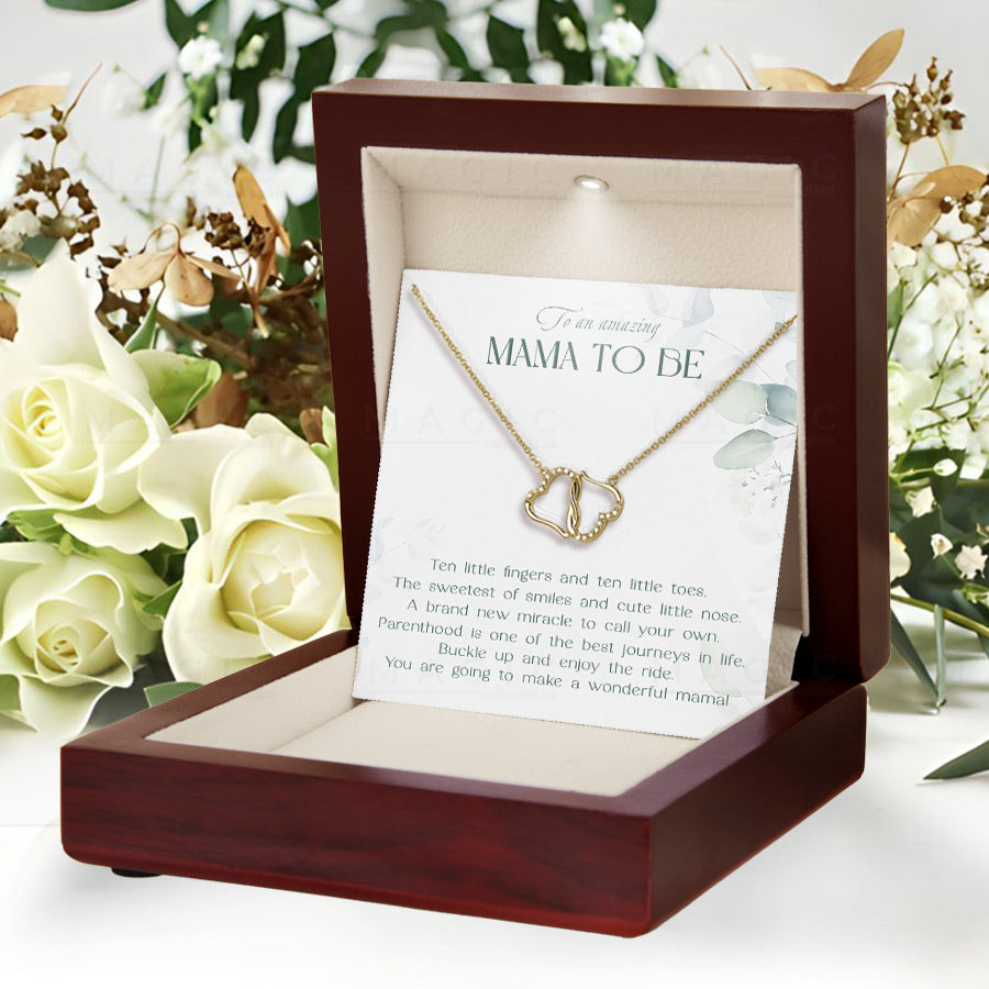 This necklace is a versatile accessory your mom can wear on any occasion, adding elegance and style to her outfit. The package comes with two jewelry box options, a standard gift box or a deluxe box with lights inside, providing elegant and thoughtful mama to be gifts. This necklace is a great way to show your mom how much she means to you and make her feel special.