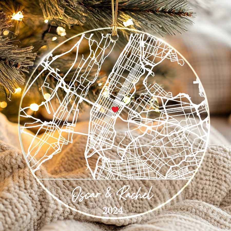 Personalized Wedding Ornaments | Custom Map Ornament for Wedding | Circle Acrylic Ornament