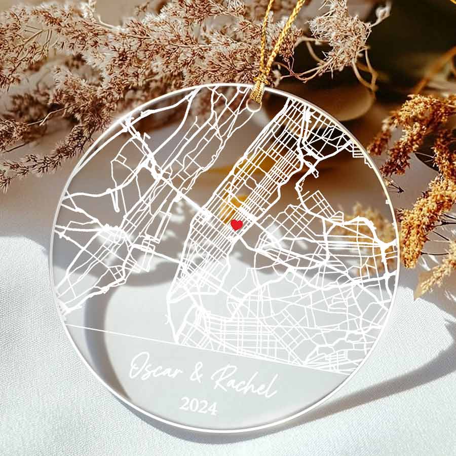 Personalized Wedding Ornaments | Wedding Acrylic Ornament With Custom Map | Circle Ornament