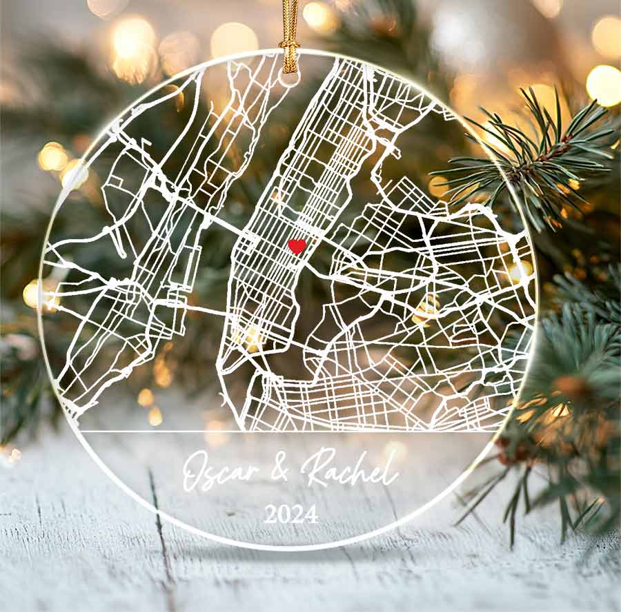 Enhance the magic of your wedding day with our stunning married christmas ornament | wedding acrylic ornament with custom map | circle ornament that beautifully reflect your unique love story. You can choose from a wide range of Wedding Ornament or from Personalized Christmas Ornaments for Couples, each of which can be customized with the name or image you want.