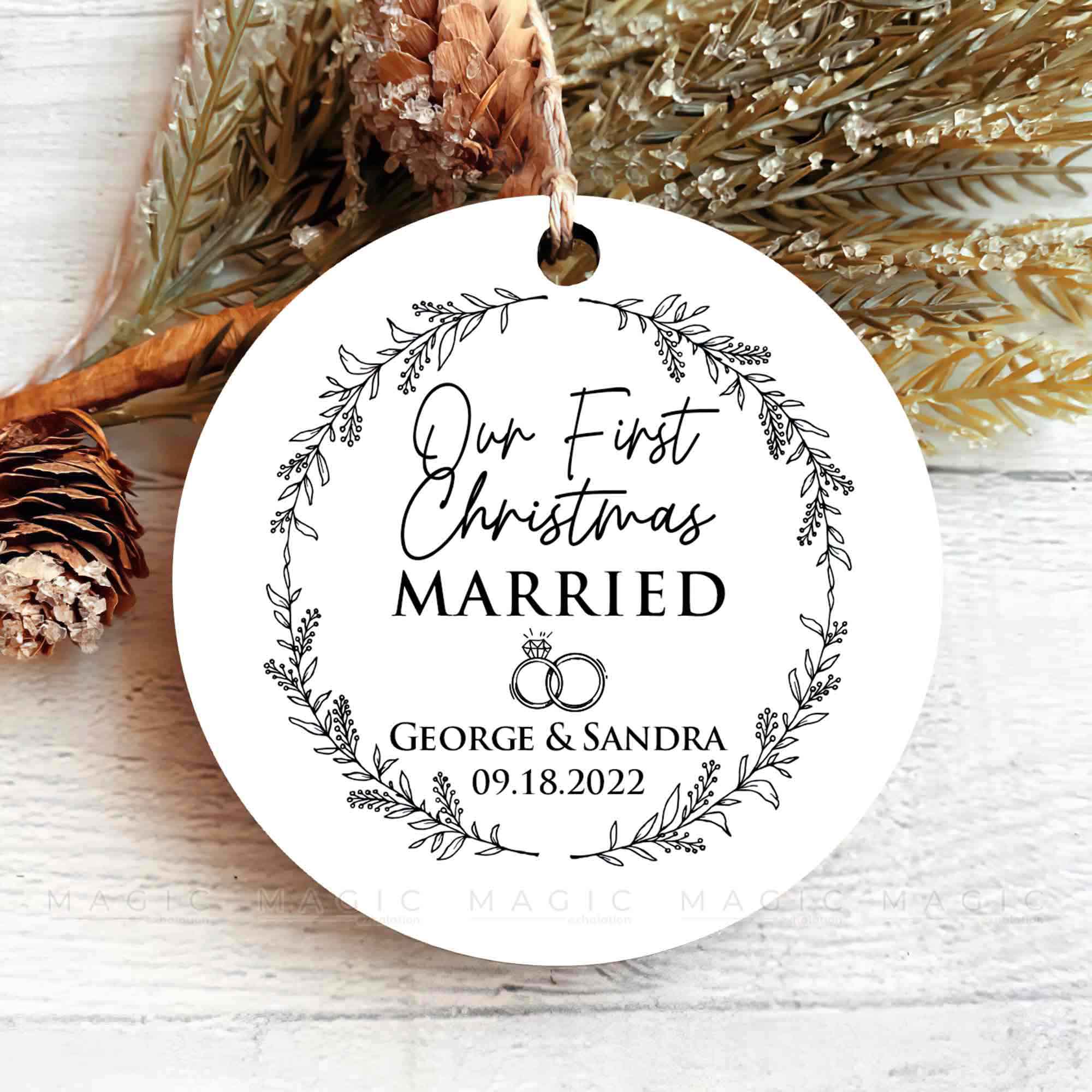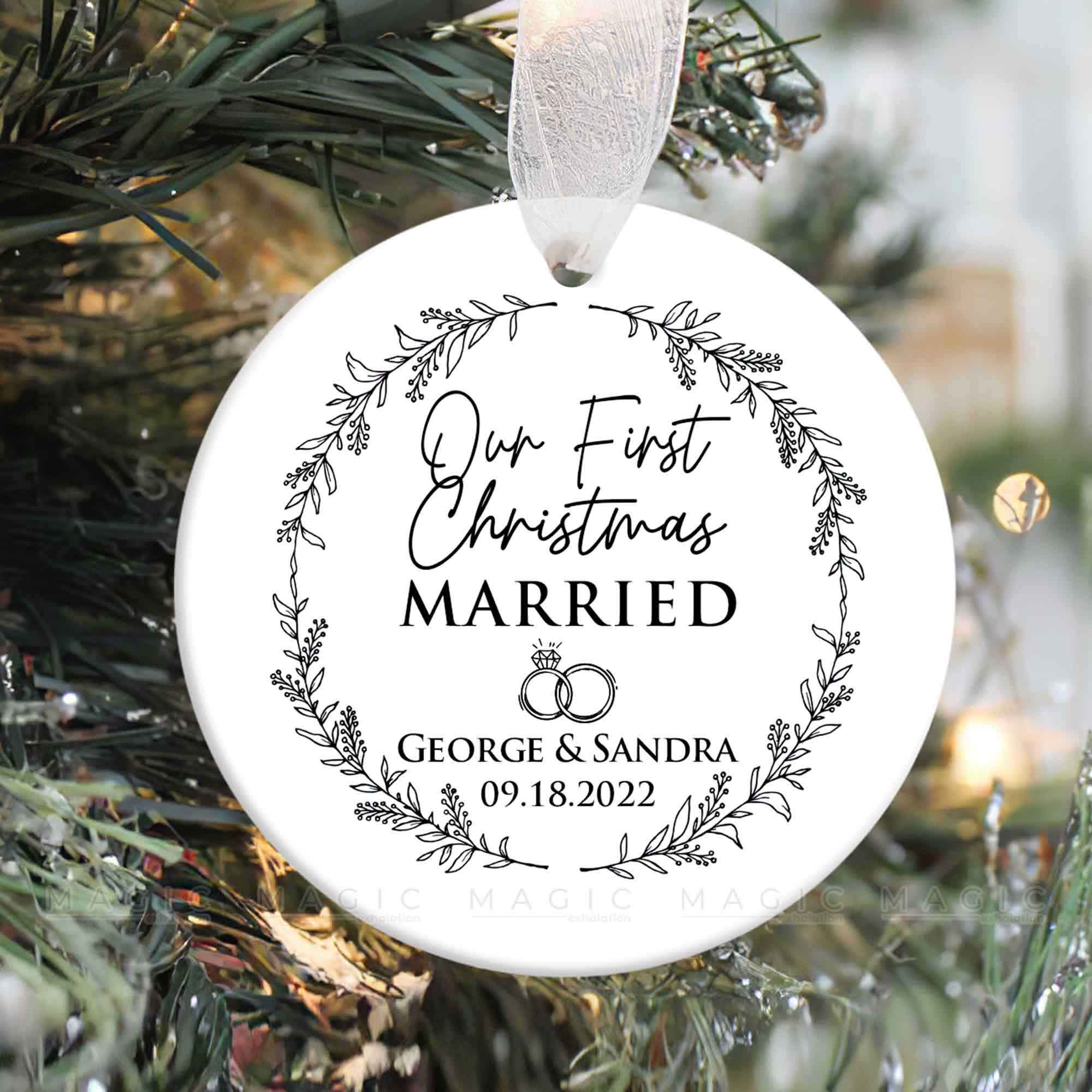 Giving a Personalized Christmas Ornament to the one you love is a sweet gesture that shows thoughtfulness and care, especially Engagement Ornaments for a couple. Married Ornament | Magic Exhalation is a great gift for the future bride and groom that will create memories that will last a lifetime together.