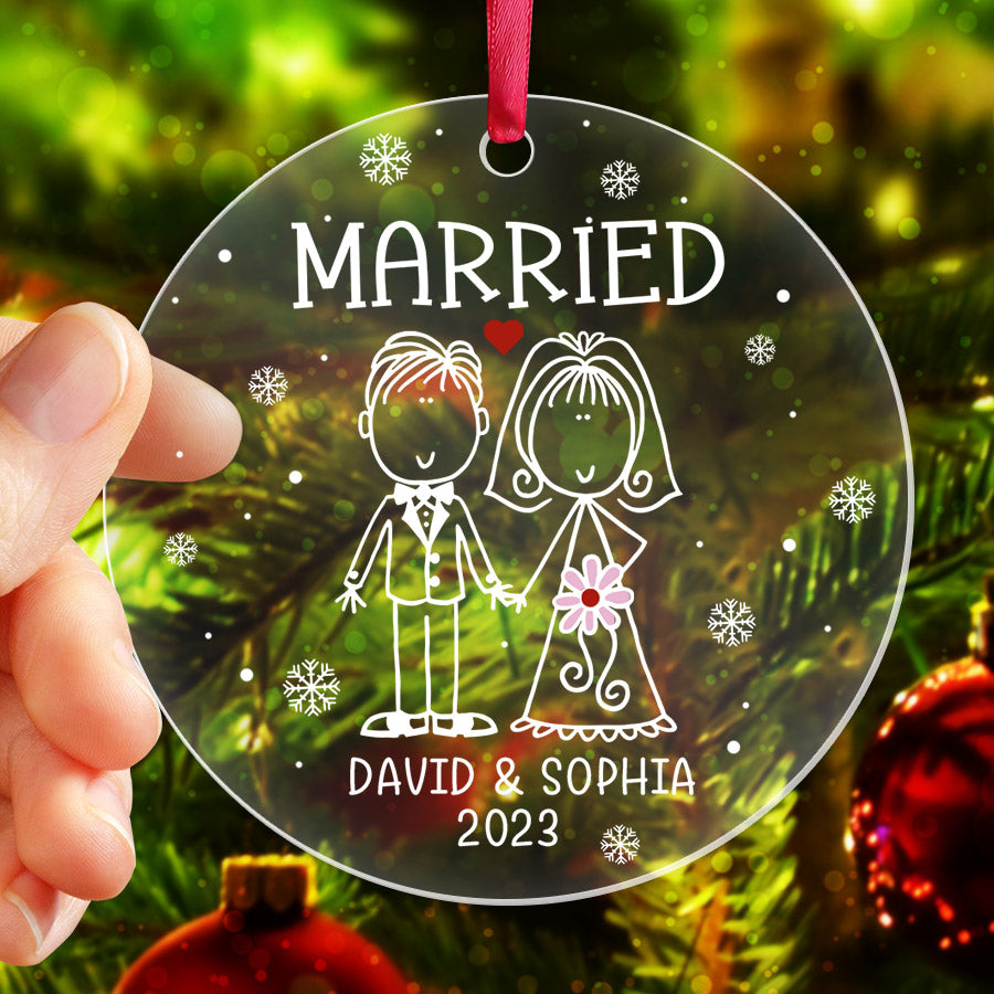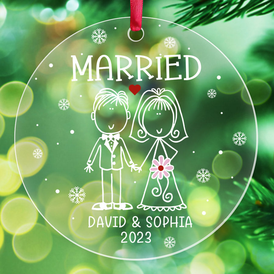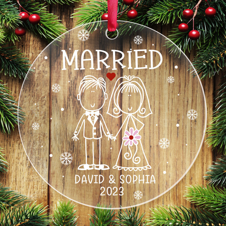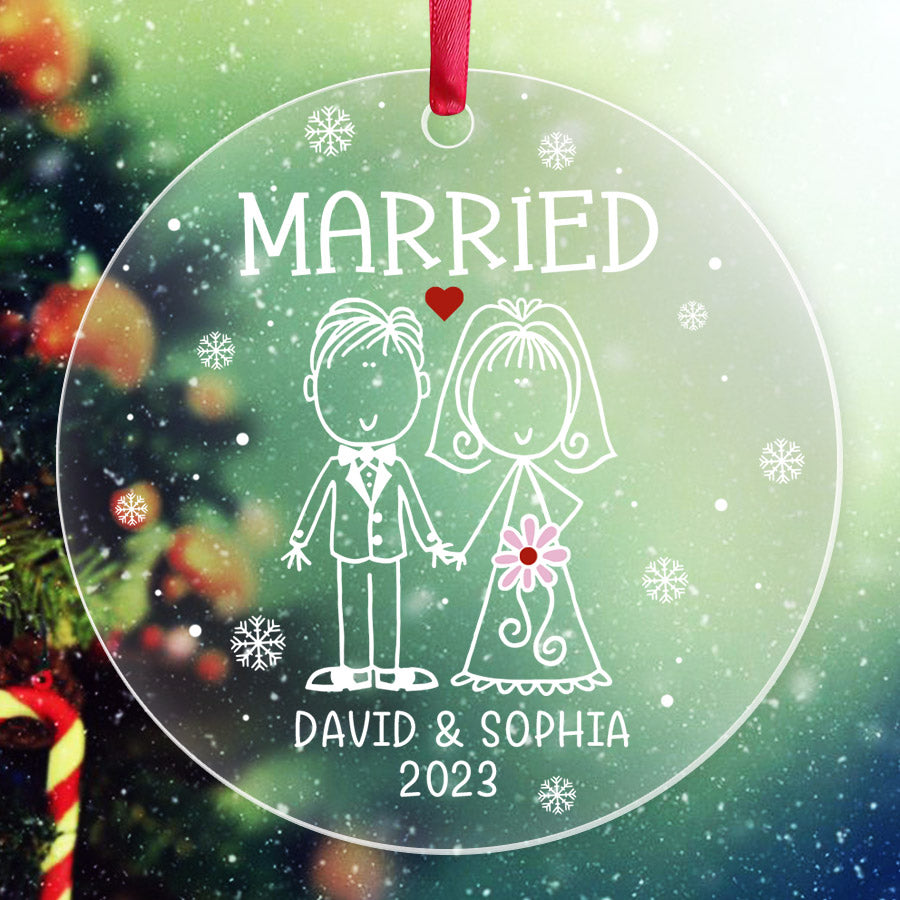Celebrate your love and special day with married ornament for your tree. The wedding gift Christmas ornaments display your names, wedding date, or a short message to immortalize your marriage for the holidays to come. Hanging proudly year after year, these Personalized Christmas Ornaments will become a treasured tradition reminding you of your commitment to one another.