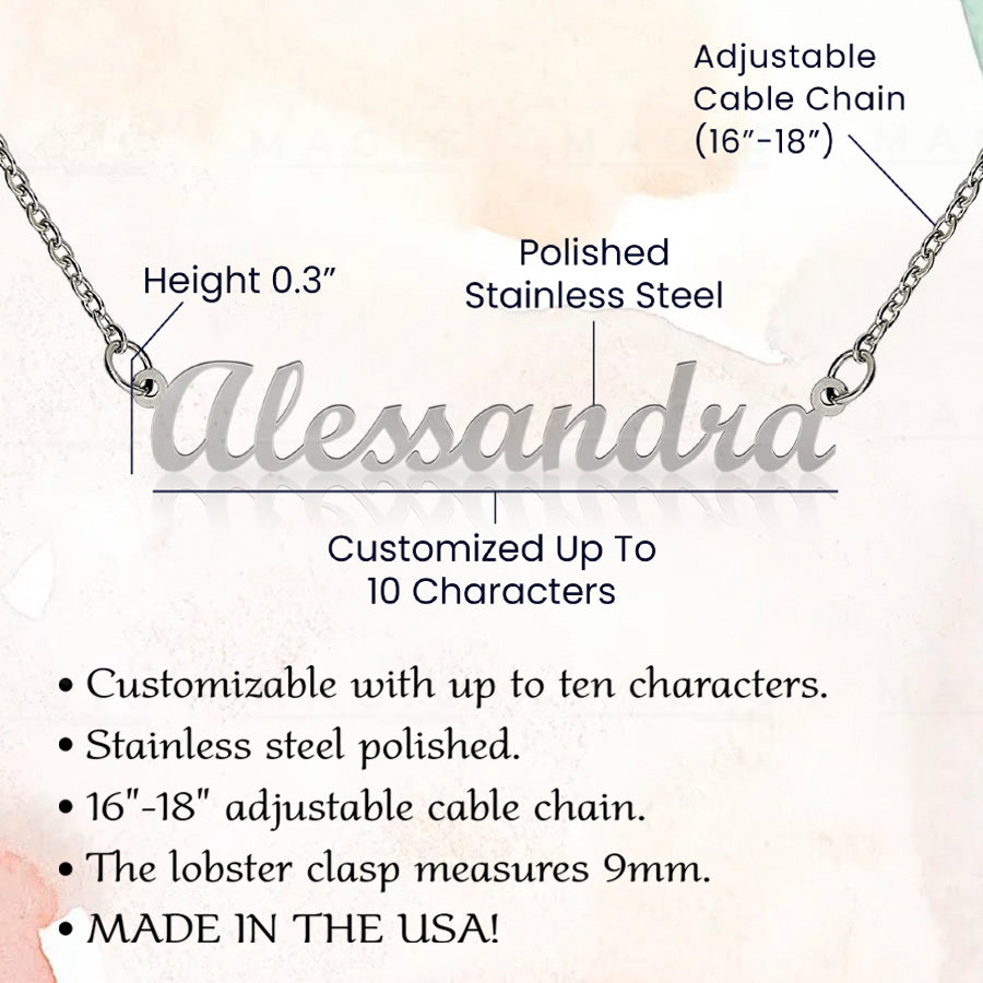 With delicate necklace mom custom gifts | personalized mother’s day gift, let mom wear your love close to her heart. This extraordinary personalized gift for mom is more than just a piece of art; it's a heartfelt tribute to the incredible woman who has made a lasting impact on your life. Crafted from sterling silver, it features space for up to three engraved lines detailing your special message.