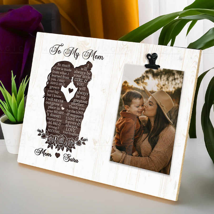 This Mother's Day, give your mom the gift of treasured memories preserved beautifully in photo frame mother daughter gifts for mom | custom mothers day gifts. This extraordinary personalized gift for mom is more than just a piece of art; it's a heartfelt tribute to the incredible woman who has made a lasting impact on your life. Filled with an updated photo of your family, this frame allows mom to proudly display your moments together for all to see.
