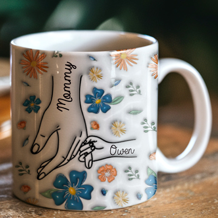 Give mothers day gift for new mom | holding mama’s hand 3d inflated effect mug that celebrates the impact motherhood has made on her life. Every time she reaches for her personalized mug, the handprint engraved within will bring a smile to her face and remind her of the enduring love and guidance she provides to her family. A simple gesture, but one that comes straight from the heart.