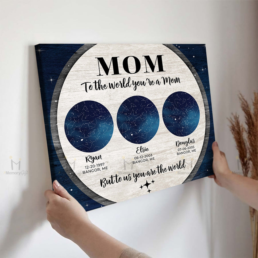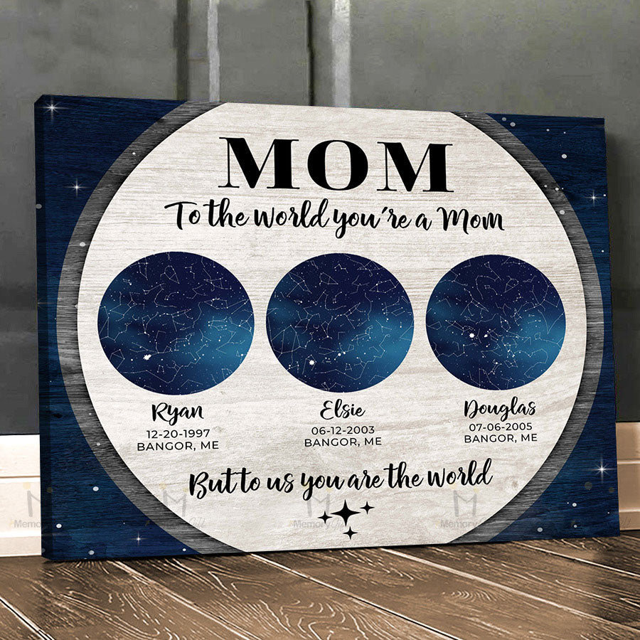 Gifts For Mom Custom | Personalized Mothers Day Gift | Custom Star Map Gifts Mother'S Day Canvas Art | Mothers Day Wall Decor