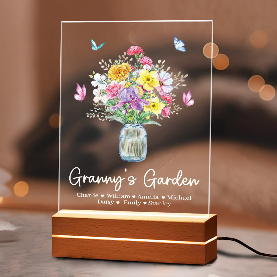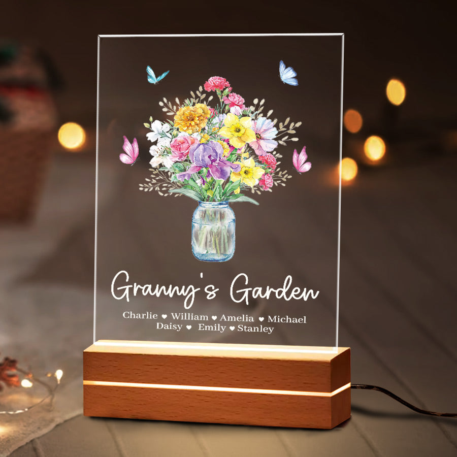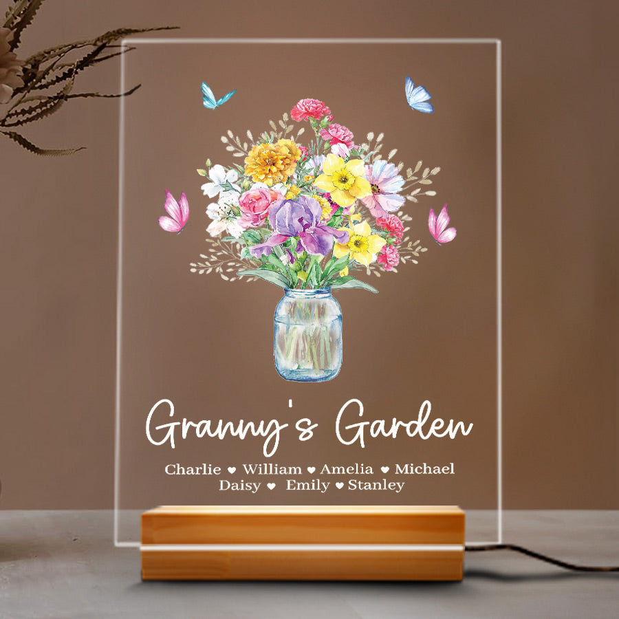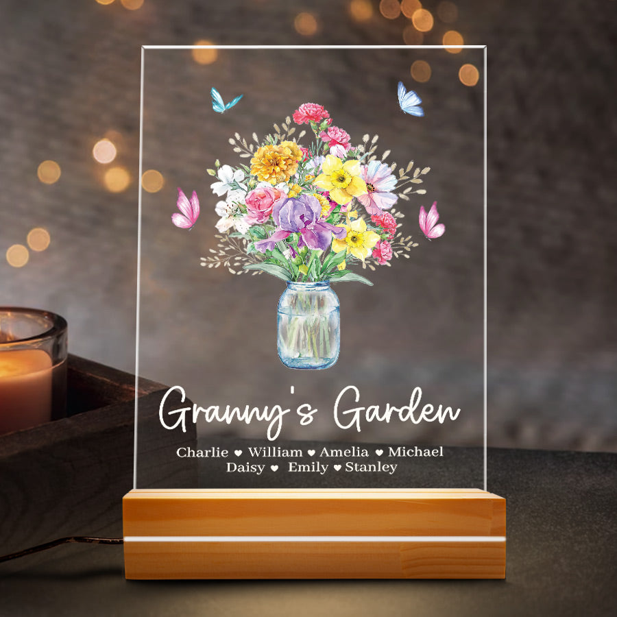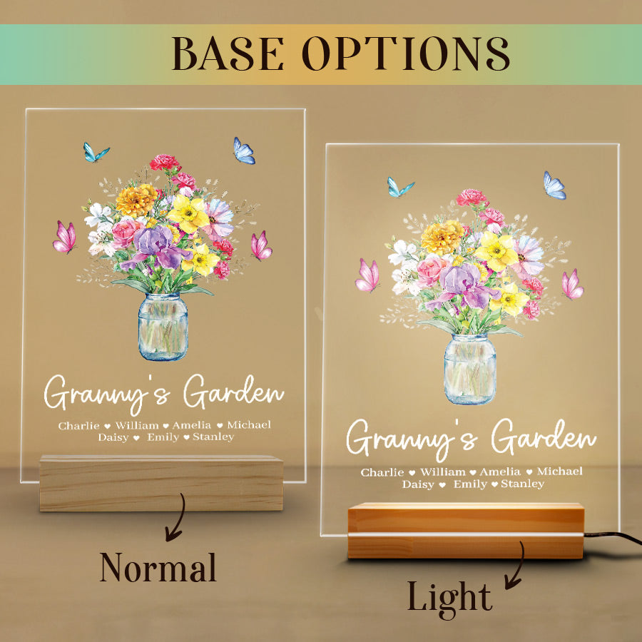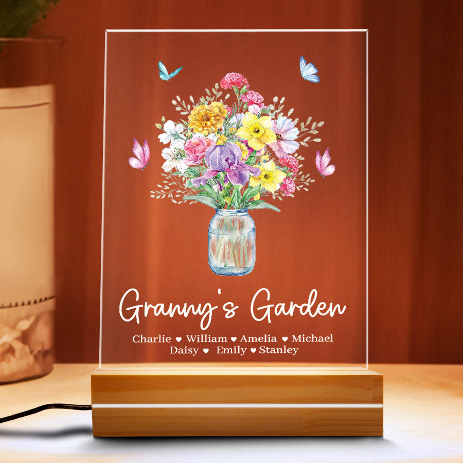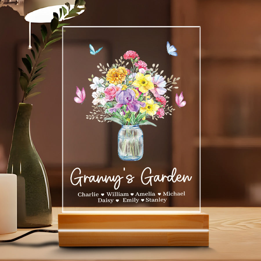 Welcome thoughtful garden art into Grandma's garden with our acrylic plaque. The beautiful mothers day personalised gifts for grandma | custom grandma gifts are laser engraved with your child's name and birth month, alongside a detailed illustration of their representative birth month flower. This extraordinary grandma garden gift is more than just a piece of art; it's a heartfelt tribute to the incredible woman who has made a lasting impact on your life.