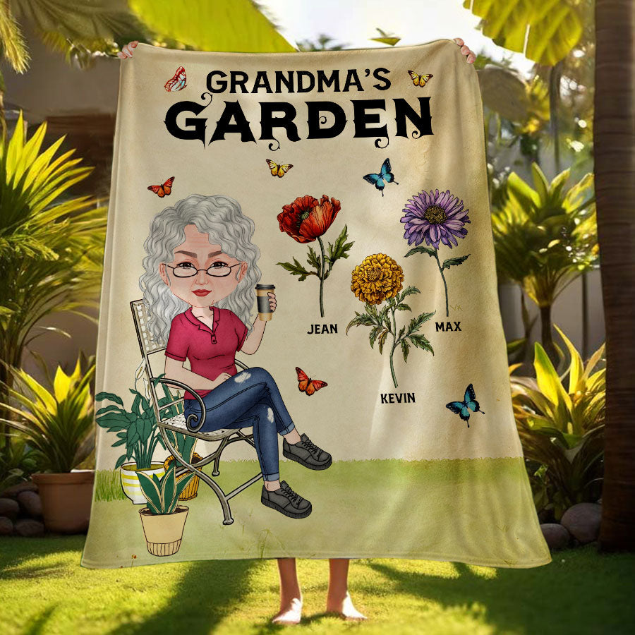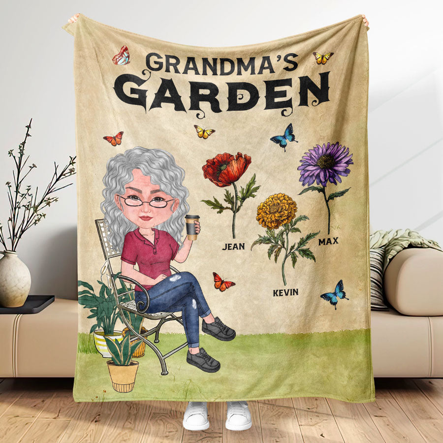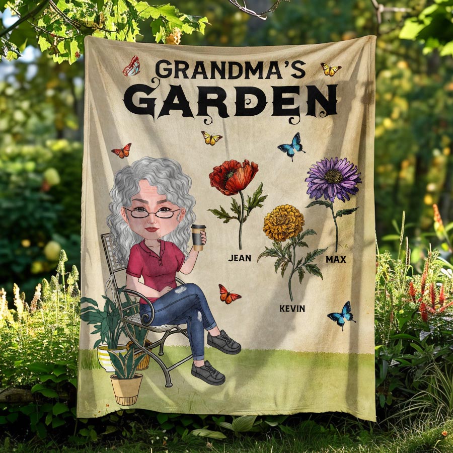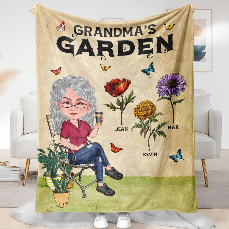 Personalized Grandma Gift | Grandmas Garden Blanket For Mother’S Day | Custom Grandma Blanket With Grandkids Names