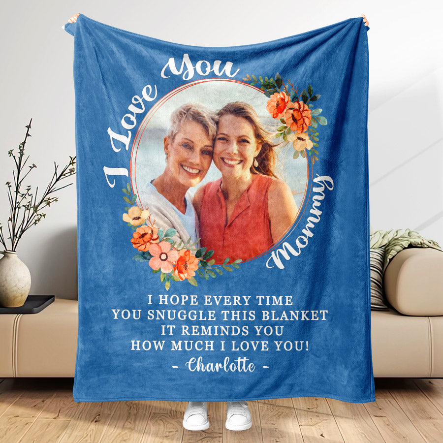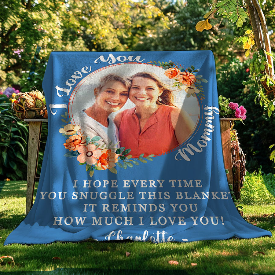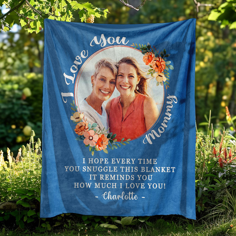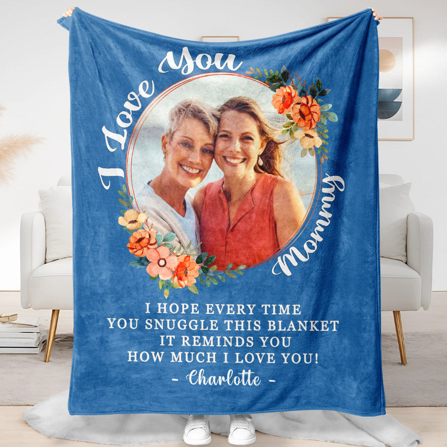 Wrap mom in comfort and coziness this Mother's Day with a plush personalized blanket mothers day photo gifts | gifts for mom custom made just for her. This extraordinary personalized gift for mom is more than just a piece of art; it's a heartfelt tribute to the incredible woman who has made a lasting impact on your life. Crafted from the softest fleece, it features a heartwarming photo of you and your message for mom permanently embroidered on one side.