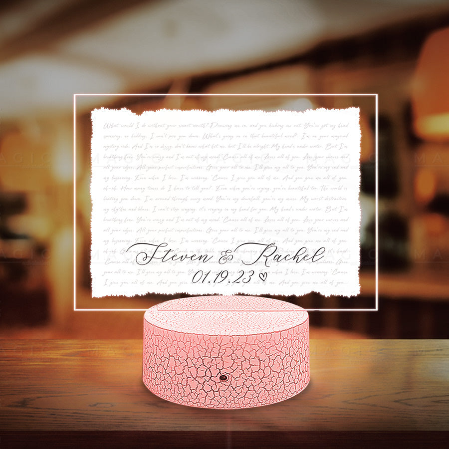 Decorative lighting for the house, bedroom, living room, bar, and anywhere else you can think of. This one-of-a-kind and attractive printed night light will make a perfect and romantic gift for your significant other.
