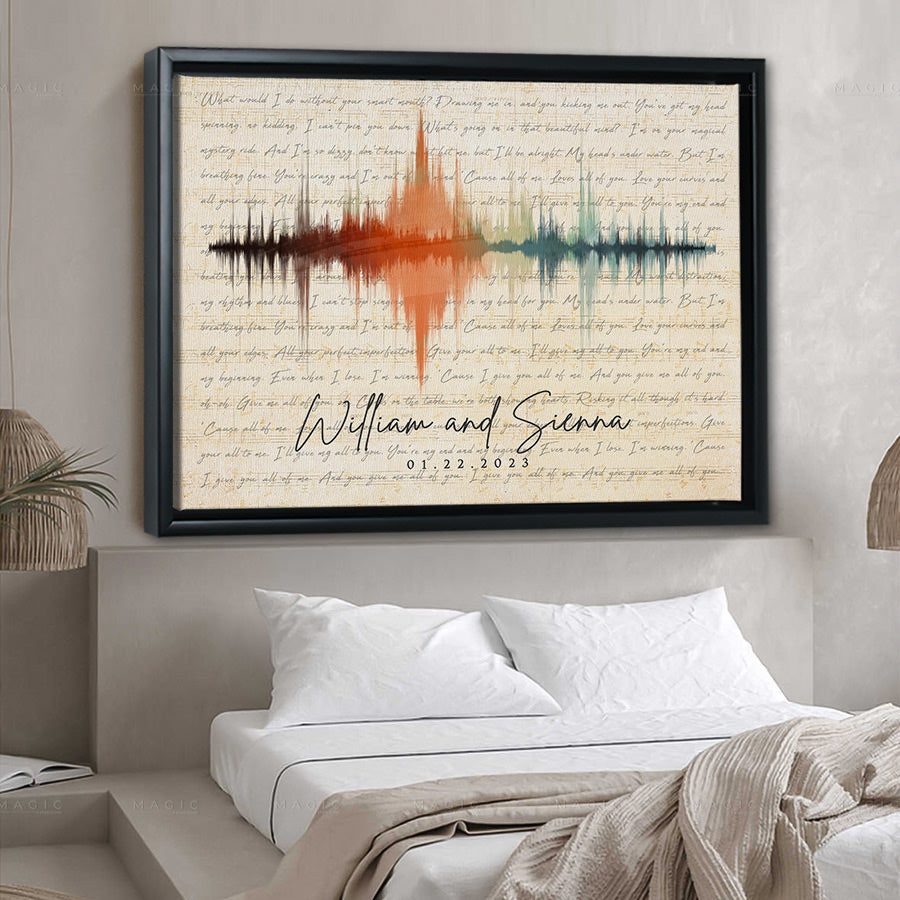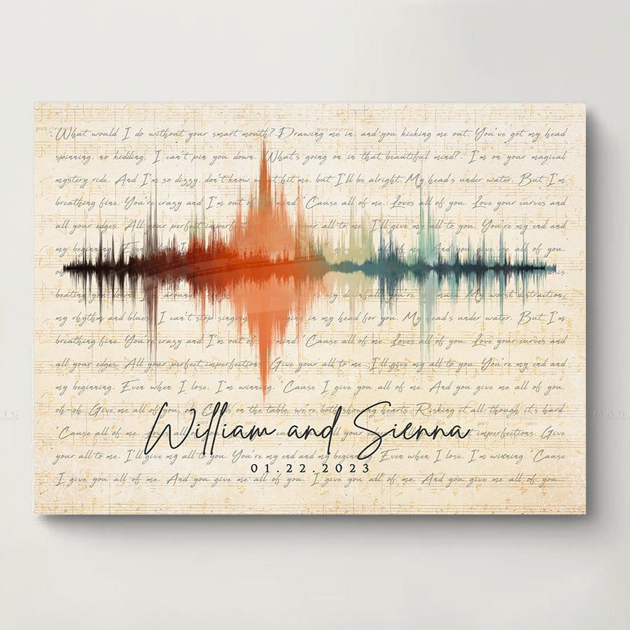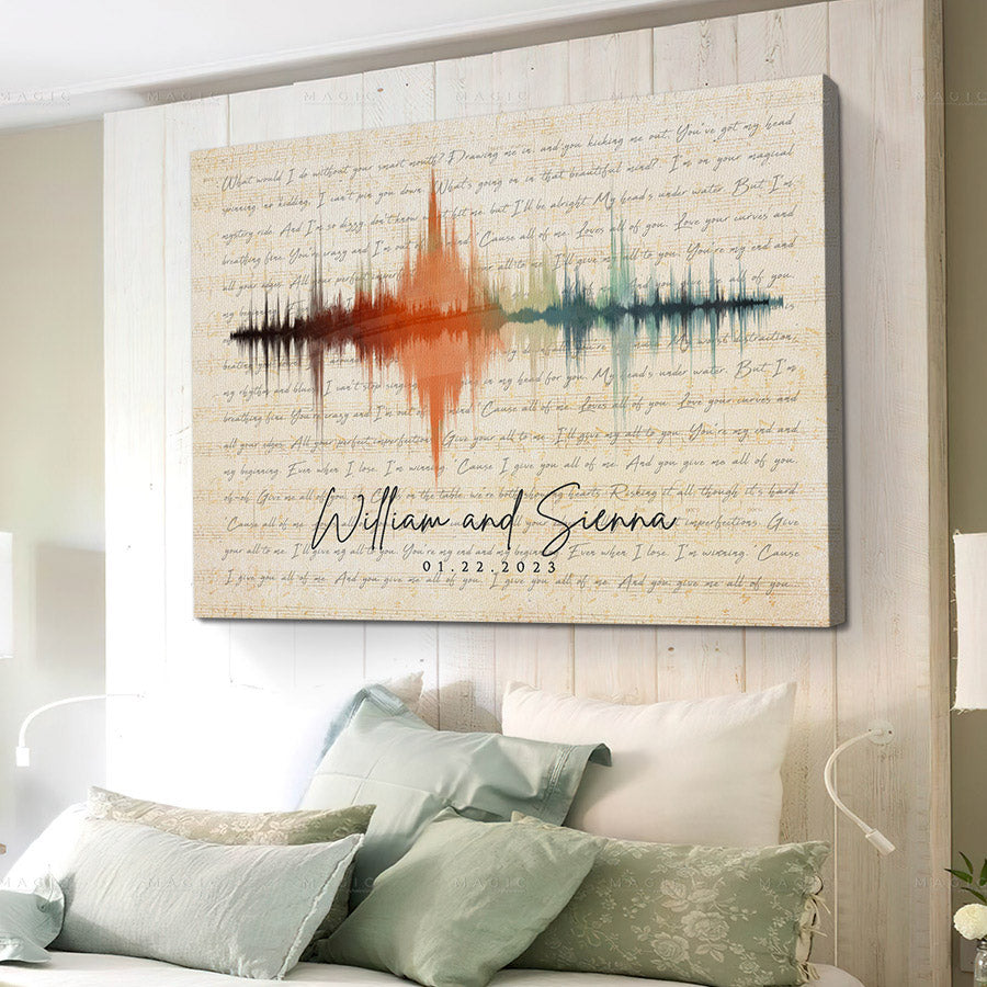 A song lyrics on canvas is sure to be the perfect gift for the other haft on any occasion, esspecially anniversary gift, as it reminds the very first monent you two are together. This music lyrics wall art is a special one with personalization on it, you can add your name with custom song on design. Your partner will cry tears of happiness!