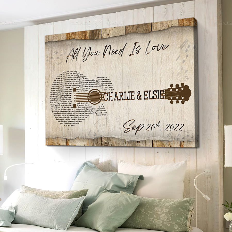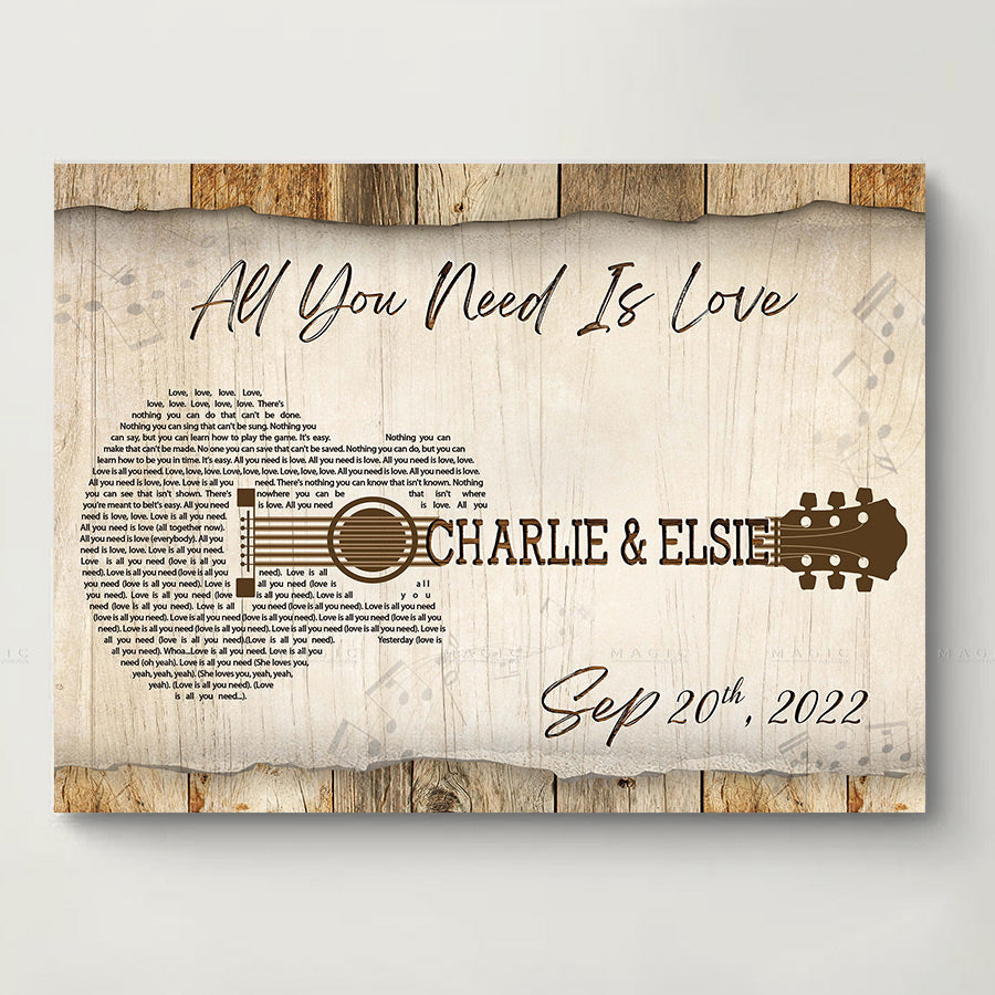 A song lyrics on canvas is sure to be the perfect gift for the other haft on any occasion, esspecially anniversary gift, as it reminds the very first monent you two are together. This music lyrics wall art is a special one with personalization on it, you can add your name with custom song on design. Your partner will cry tears of happiness!