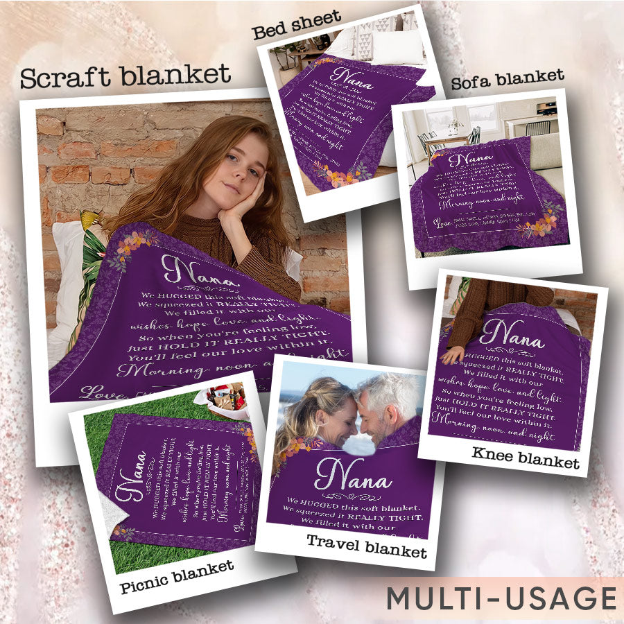 Wrap your grandma in love and warmth with our nana we hugged this blanket | mother’s day personalized gifts for grandma. This extraordinary personalized nana gift is more than just a piece of art; it's a heartfelt tribute to the incredible woman who has made a lasting impact on your life.