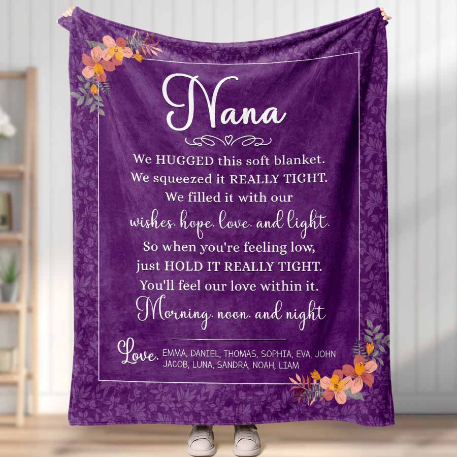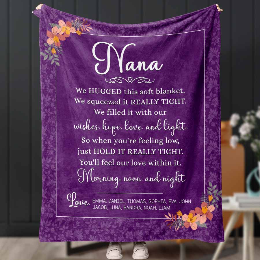 Nana We Hugged This Blanket | Personalised Grandma Gifts For Mothers Day | Grandma We Hugged This Blanket With Grandkids Names