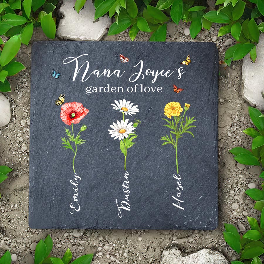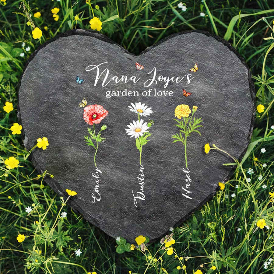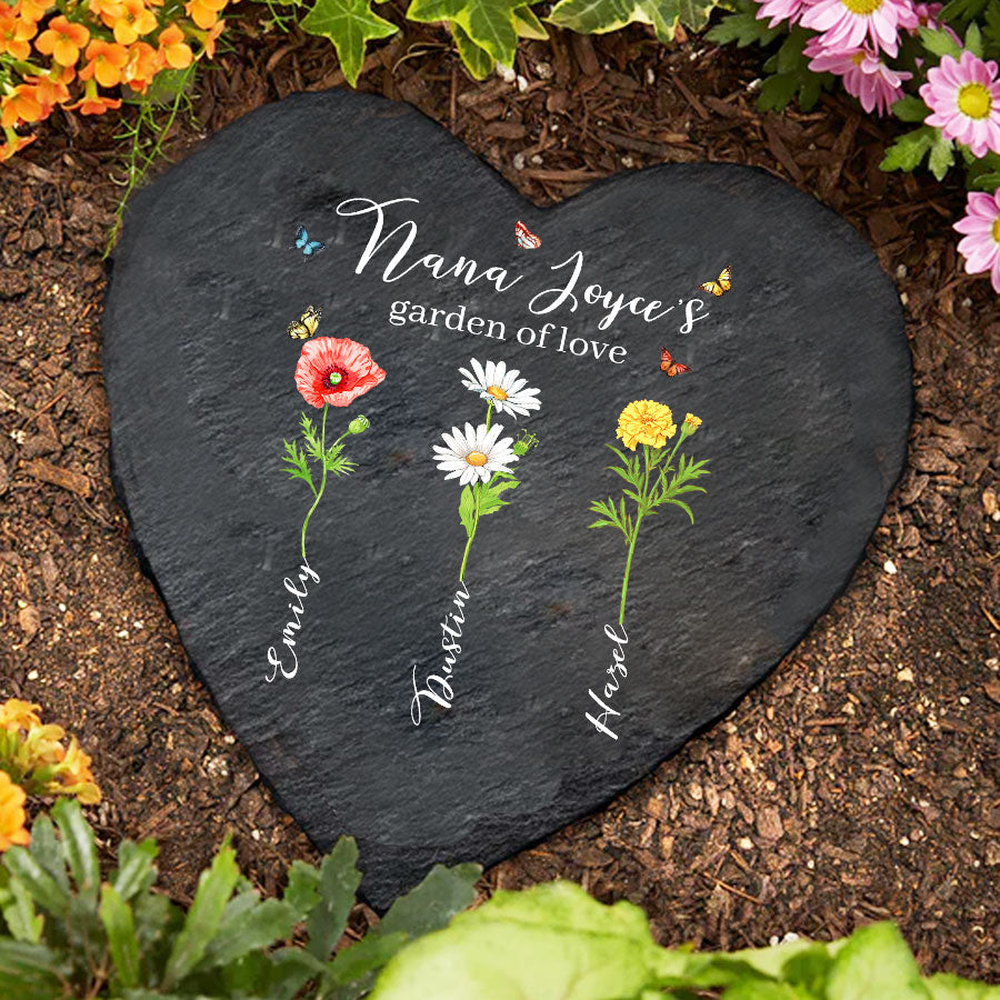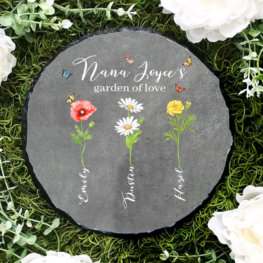 Give grandma unique nana’s garden stone to remember her grandchildren every time she visits her beloved garden. Our personalized garden stones can be customized for free with each child's birth month flowers. This extraordinary grandma garden gift is more than just a piece of art; it's a heartfelt tribute to the incredible woman who has made a lasting impact on your life.