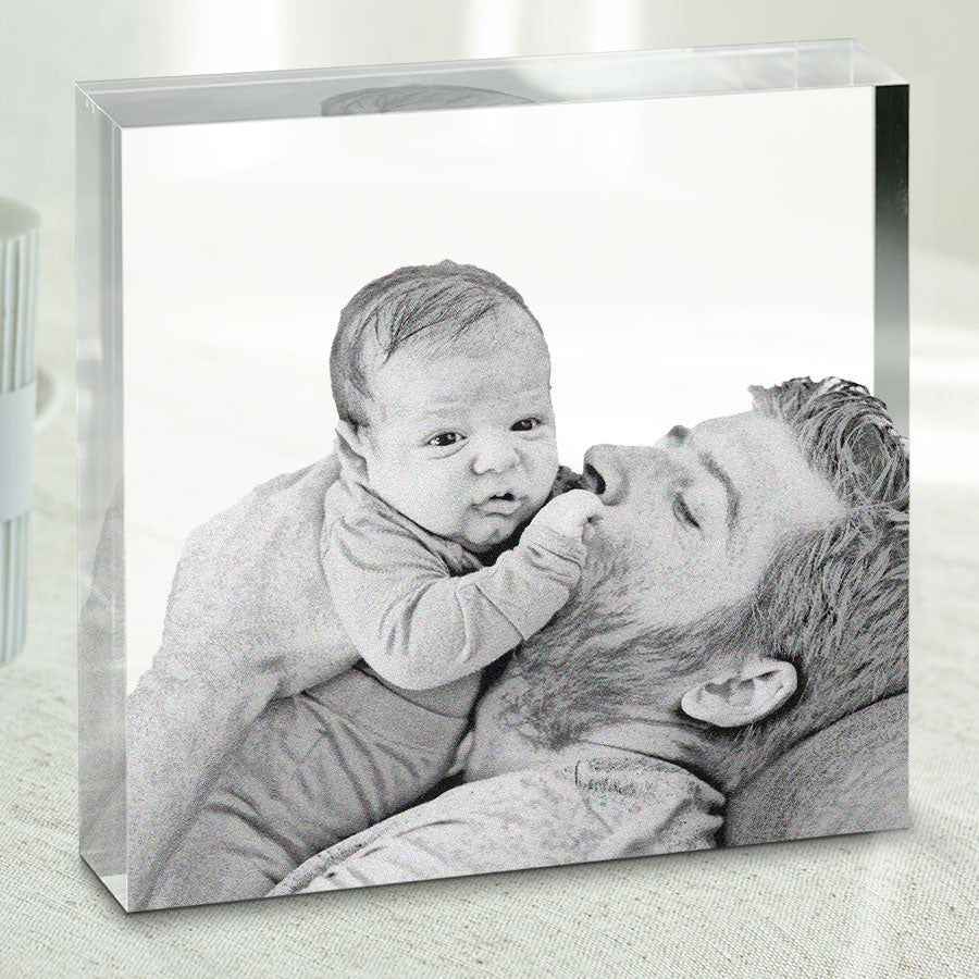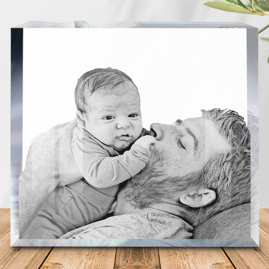 This seemingly simple new dad gift | custom acrylic photo block becomes a treasure when given to your father on Father's Day. The smooth, transparent material symbolizes the stability, support and protection your dad has provided throughout the years - being your rock when you needed it most. The clear acrylic allows him to see through to the empty space within, representing the freedom he let you explore as you grew and figured out who you are. Though time made marks on its surface, the block remains strong - just like the love and guidance your dad gave that shaped you into the person you are today.