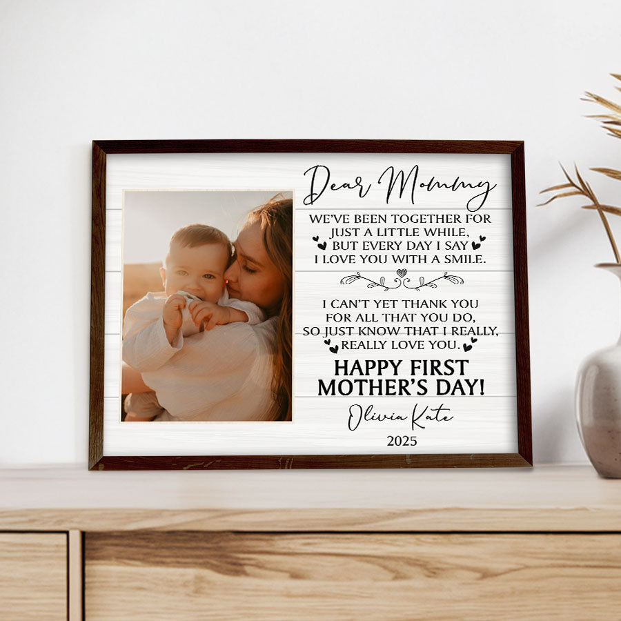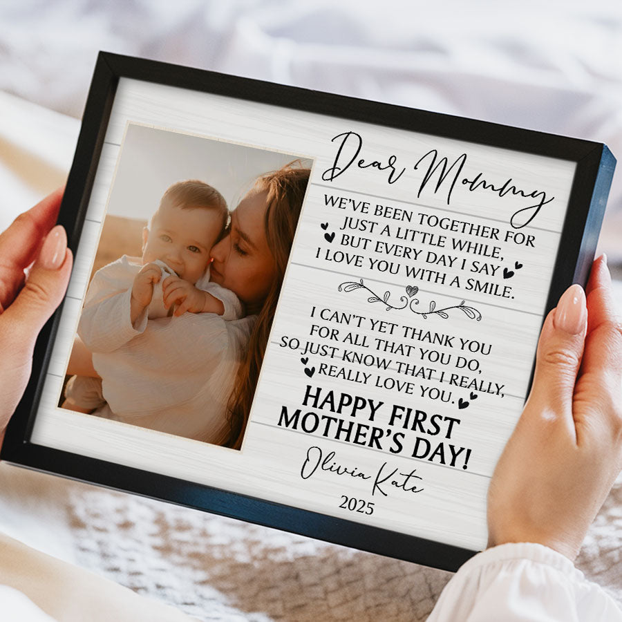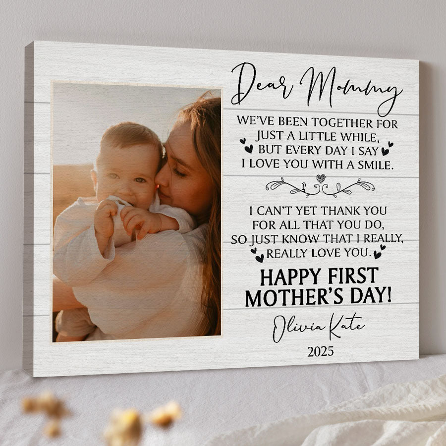 Celebrate a new beginning with a new mom mothers day gift | new mom canvas | dear mommy canvas | new mother canvas, featuring a beautifully designed First Mother's Day canvas. This unique keepsake captures the essence of motherhood, making it a heartfelt way to honor her special day. Create lasting memories with a gift that reflects her journey into motherhood.