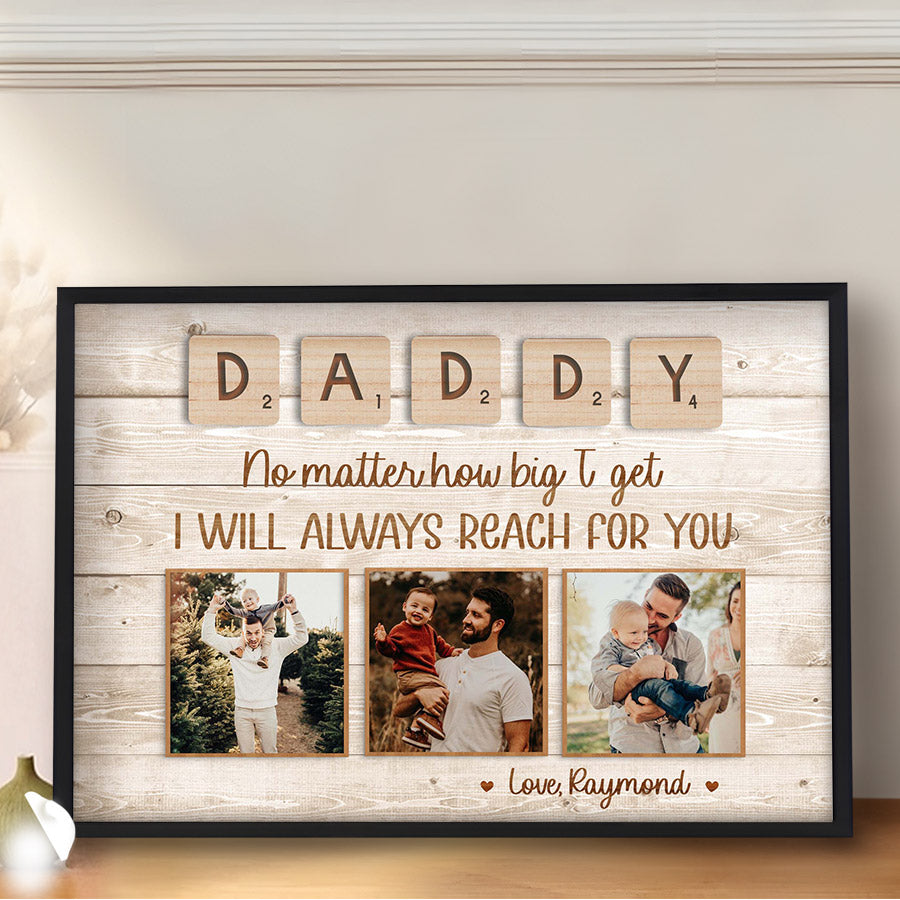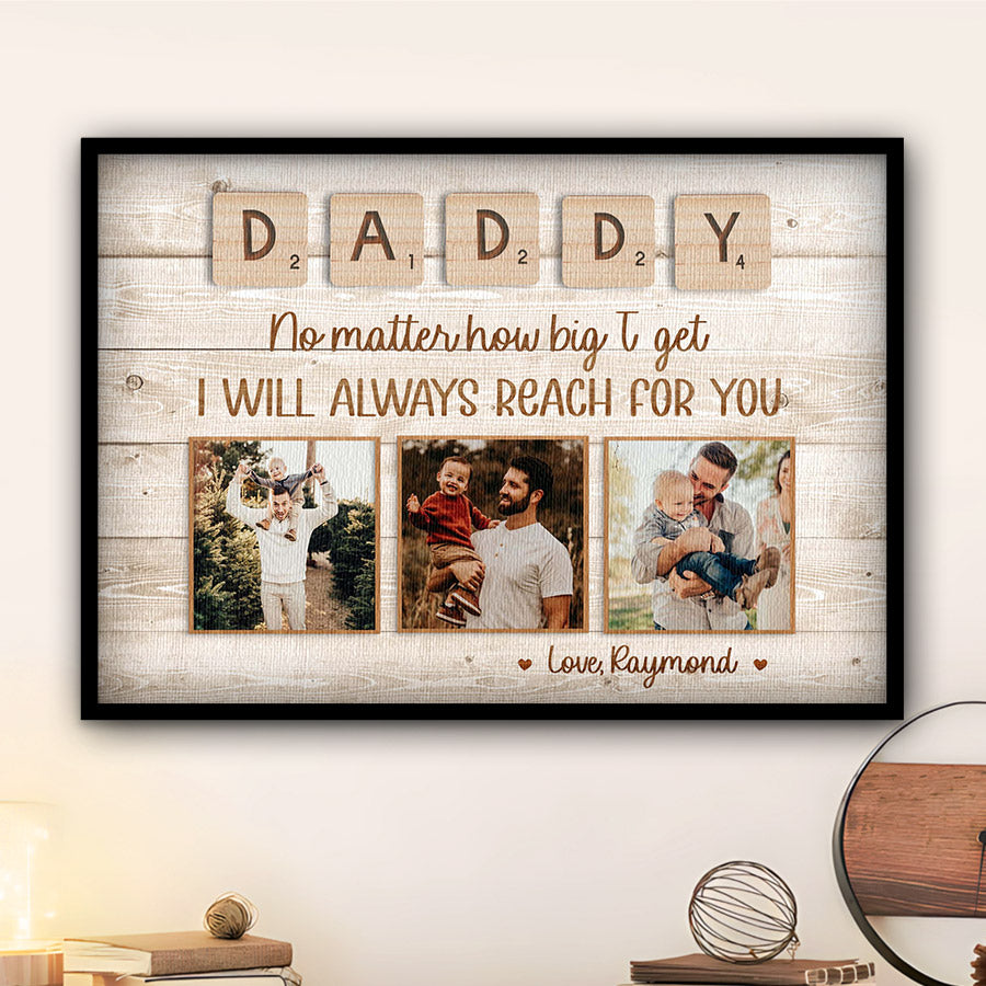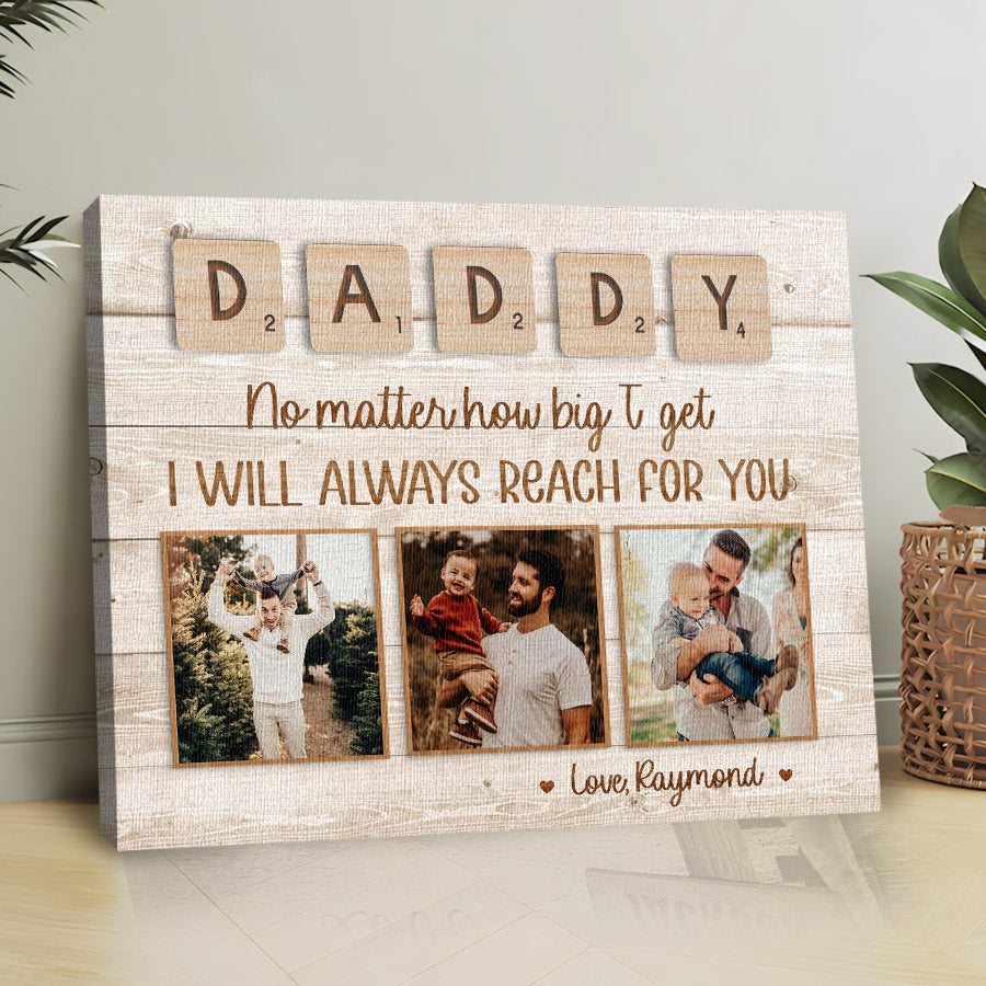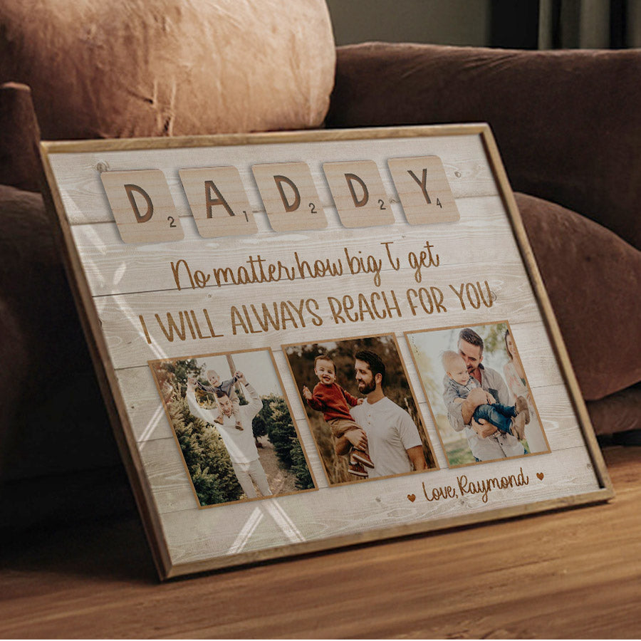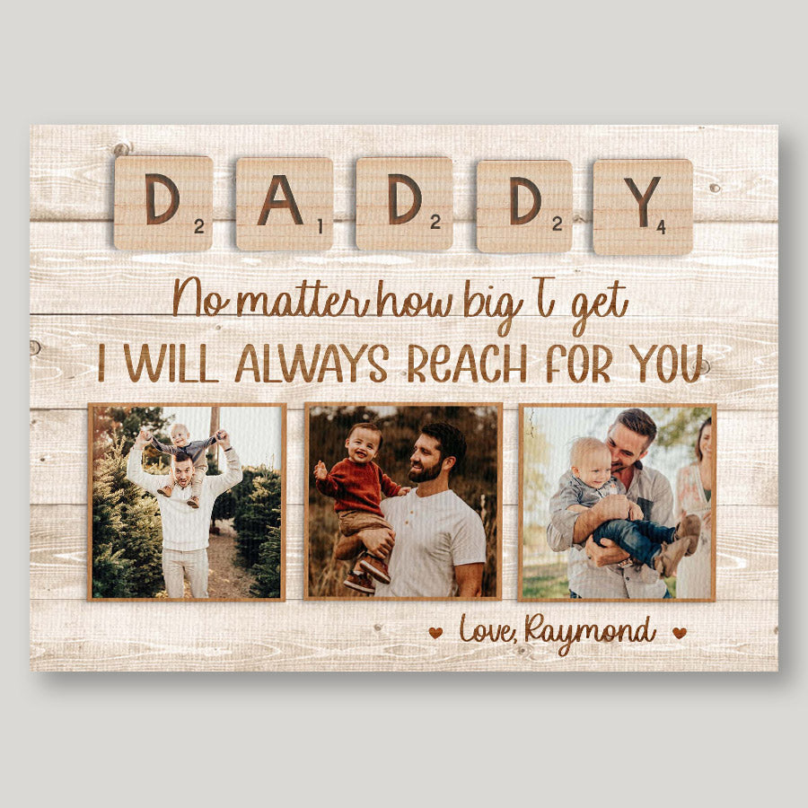 Treat the new dad in your life to no matter how big i get 1st fathers day gift | 1st father’s day gift that commemorates the baby's arrival and his first Father's Day. Our personalized photo canvas is sure to bring a smile seeing little ones grow up before their eyes. Customize it FREE now - he will love displaying this treasured memory for many years to come.
