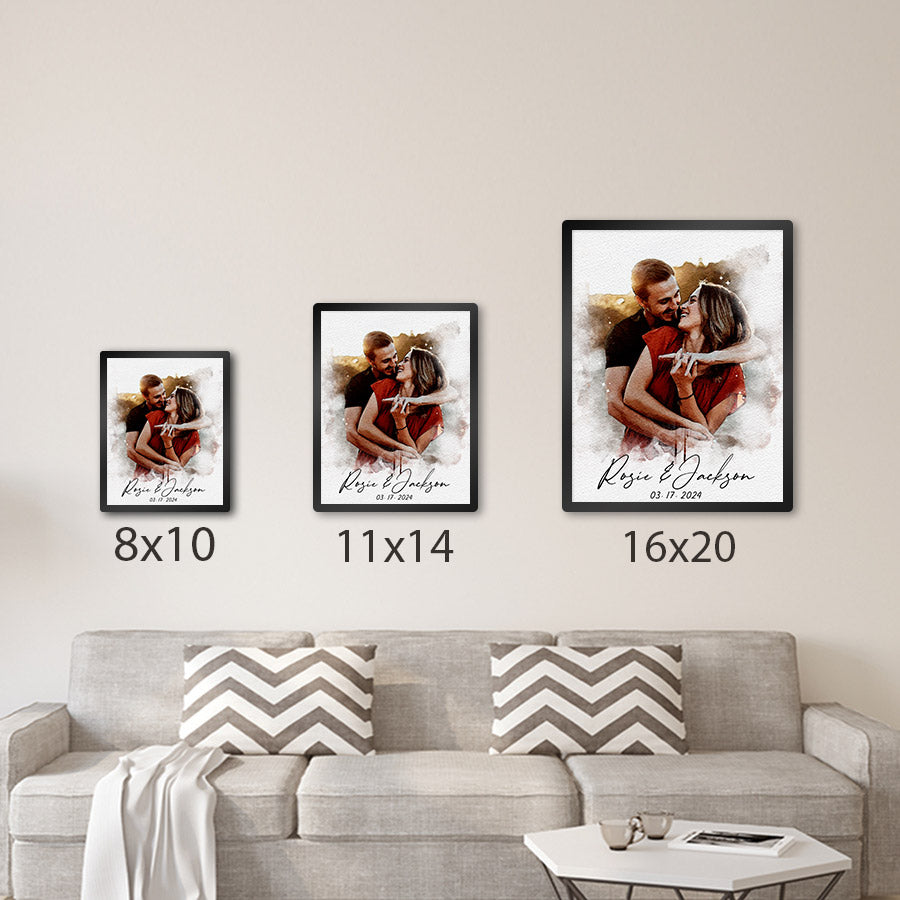 One Year Anniversary Gift | Watercolor Canvas Prints from Photos