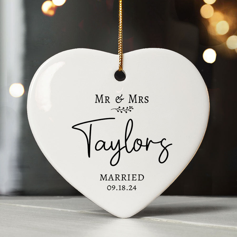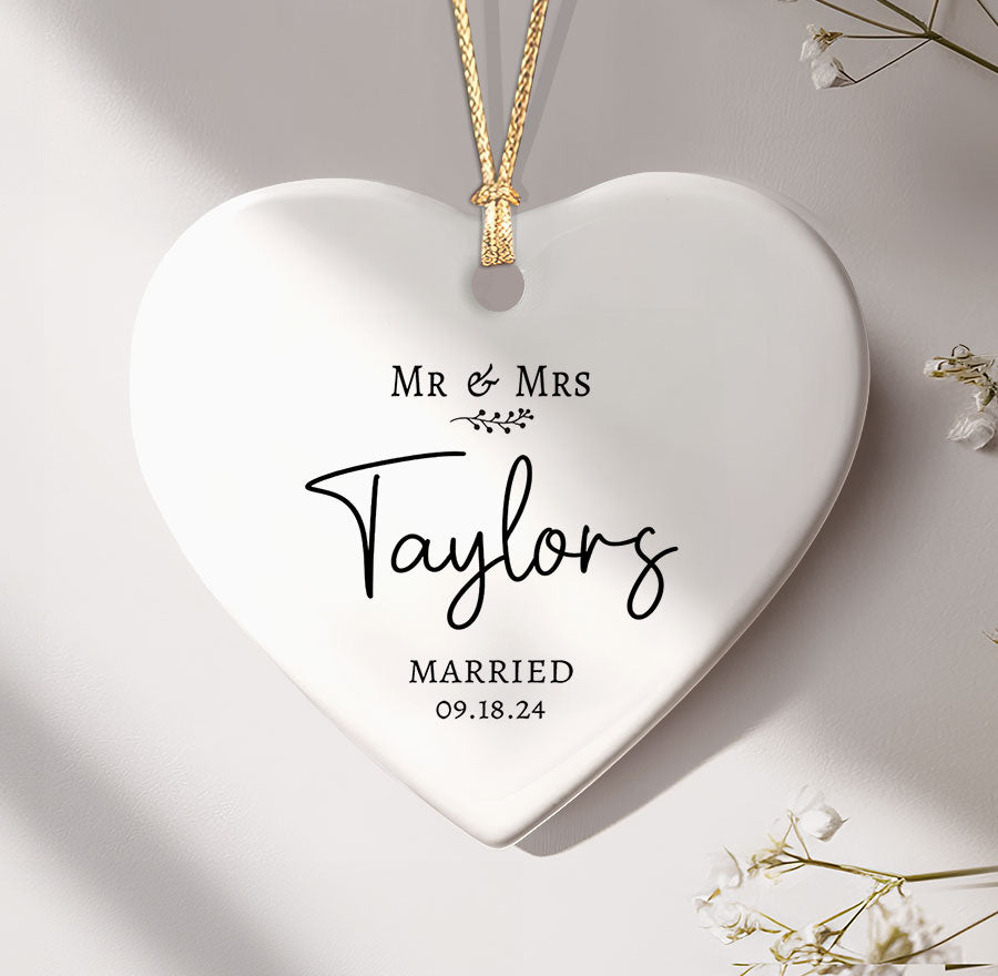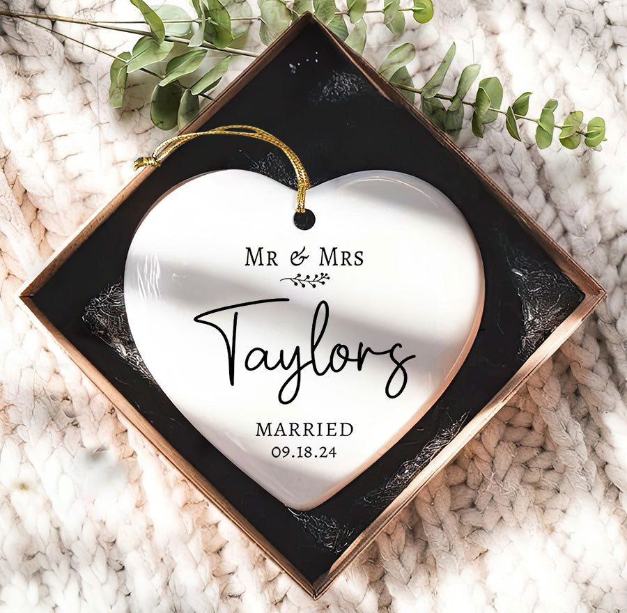When you purchase our our 1st christmas as mr and mrs ornament | personalized wedding ornaments with name | heart ceramic ornament, you’re not just acquiring a beautiful decoration; you’re investing in a meaningful keepsake that captures the essence of your love story. Each ornament can be personalized with your names and wedding date, making it a unique reminder of your first Christmas together as a married couple. This thoughtful gift not only enhances your holiday decor but also serves as a cherished memento that you can look back on for years to come. Whether for yourselves or as a heartfelt gift for friends or family, this ornament symbolizes the joy of new beginnings and the love that binds you. Embrace the spirit of the season with a piece that celebrates your journey!.
