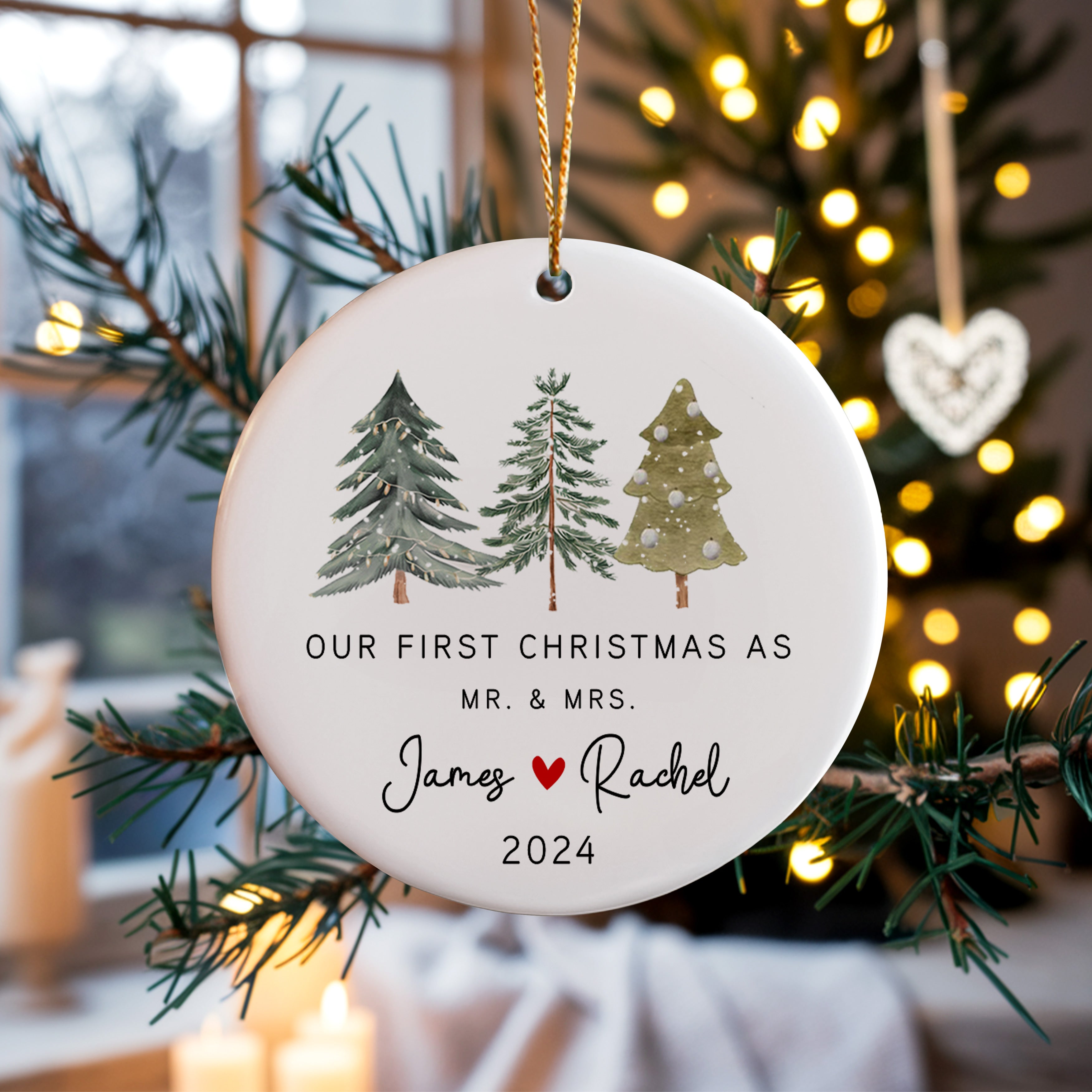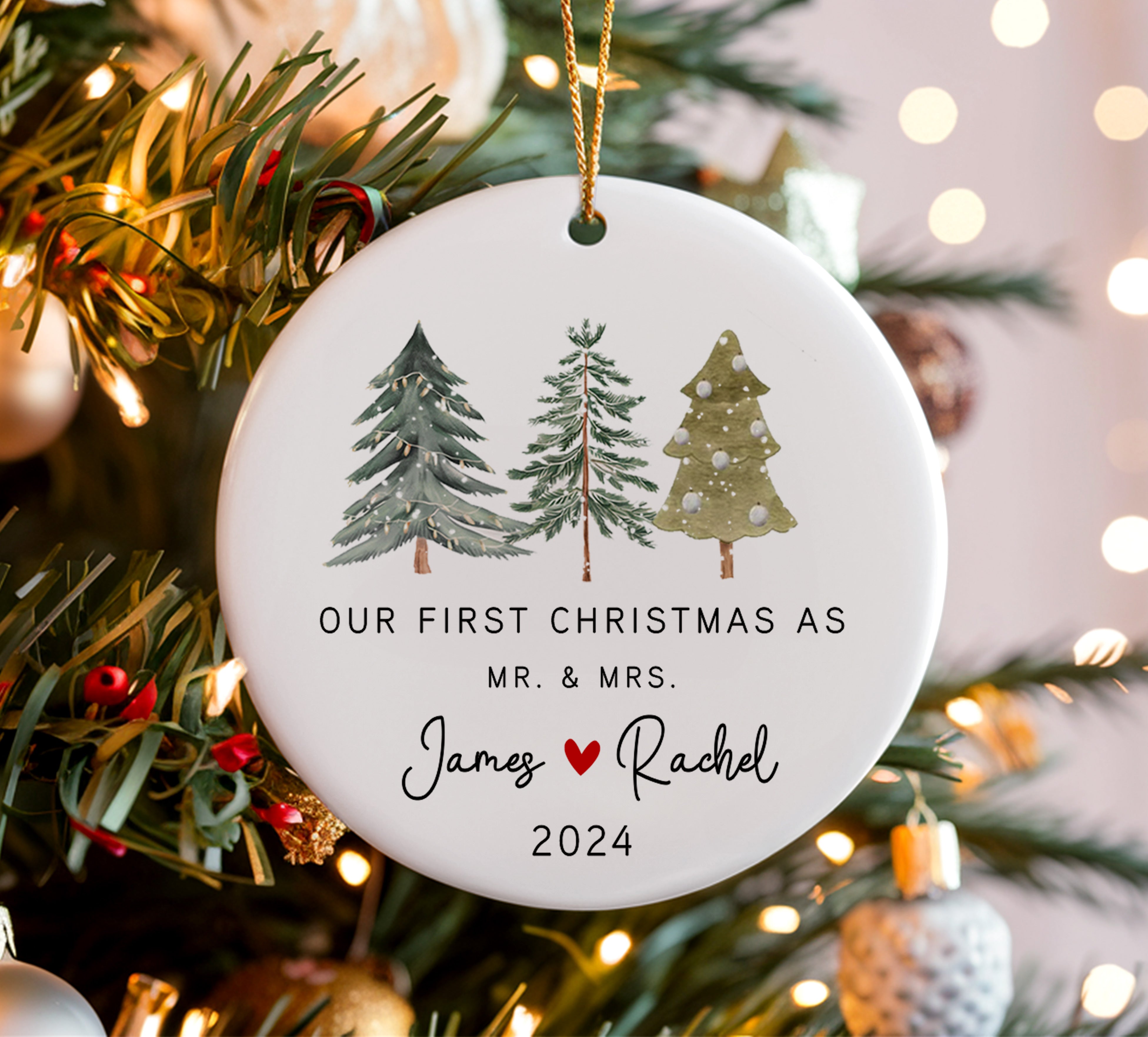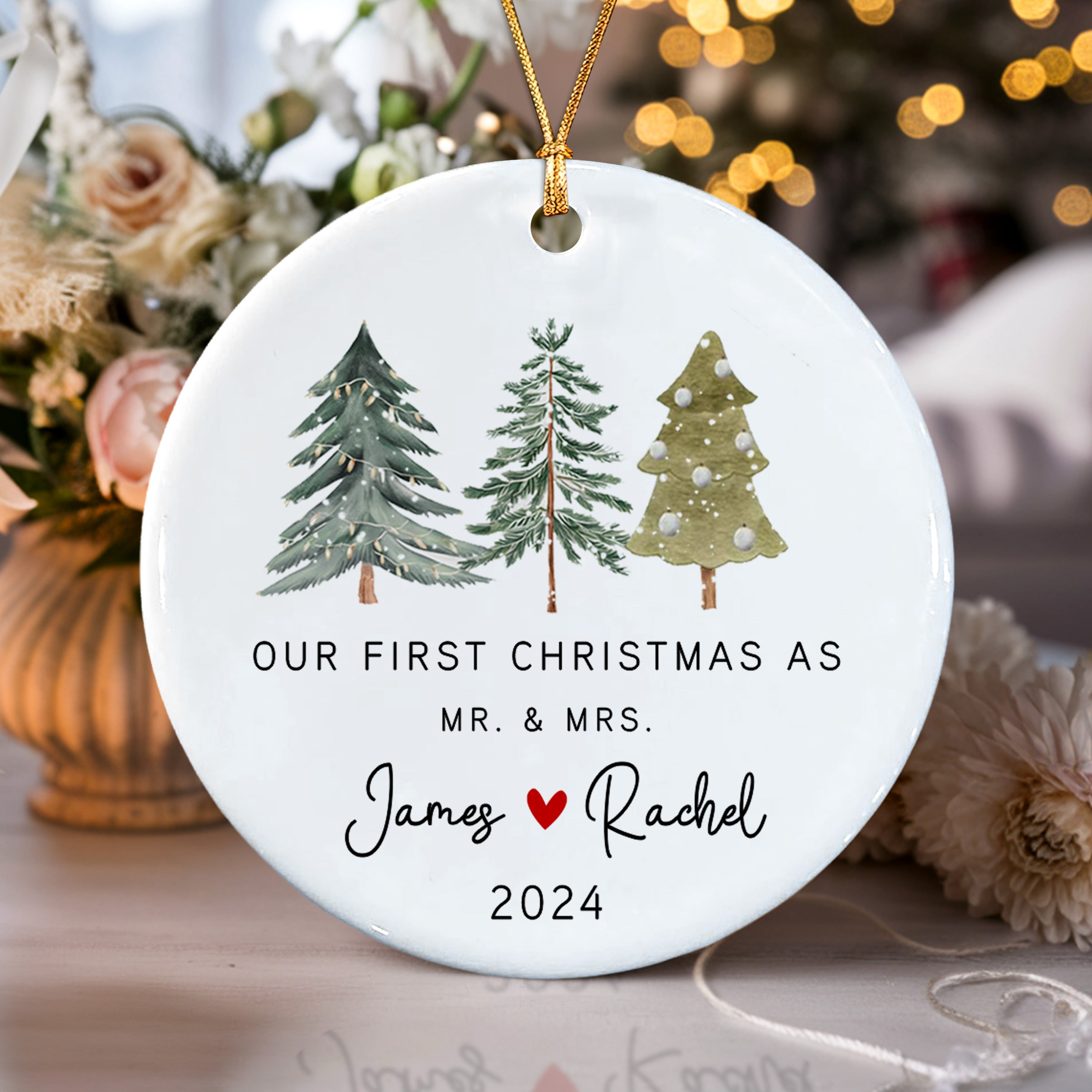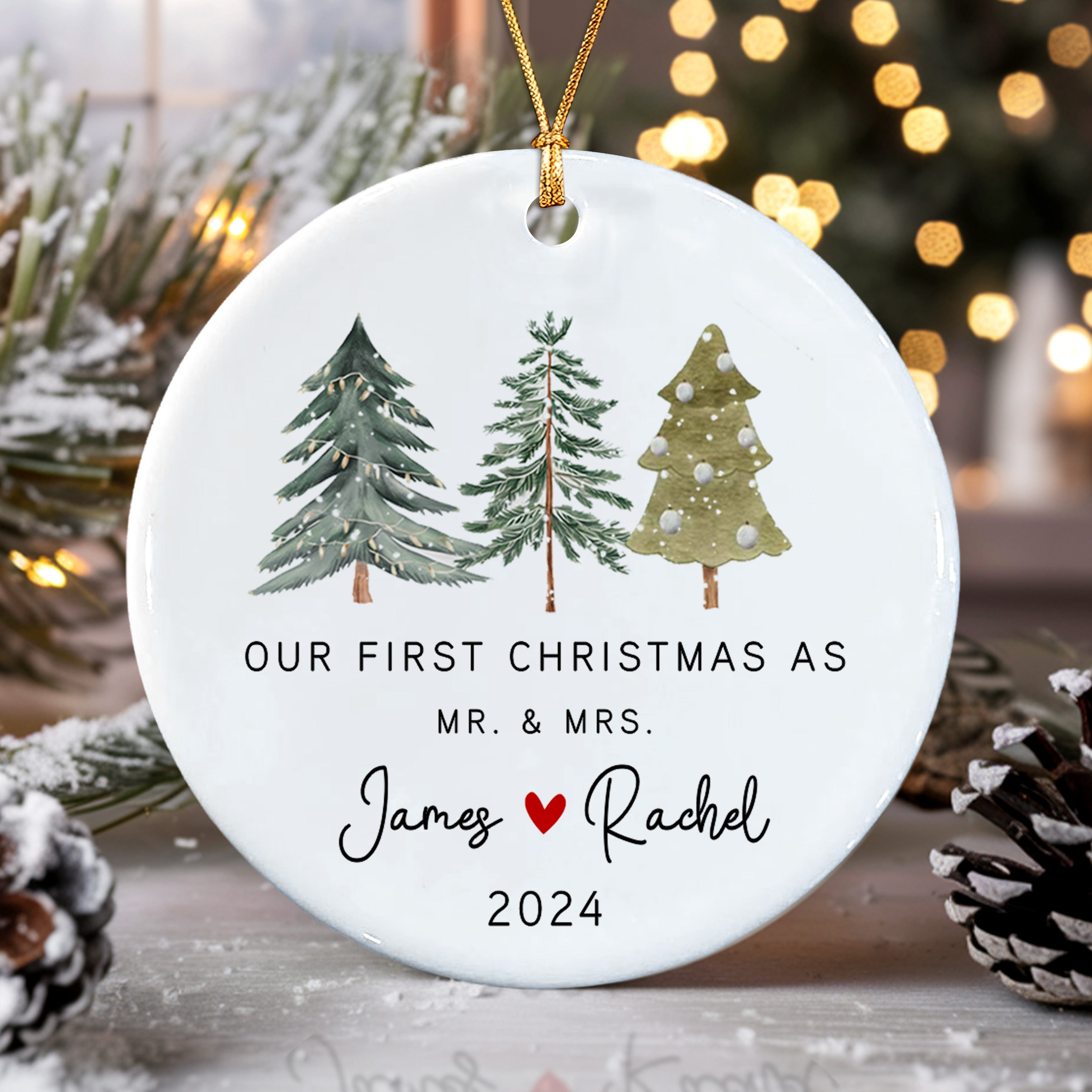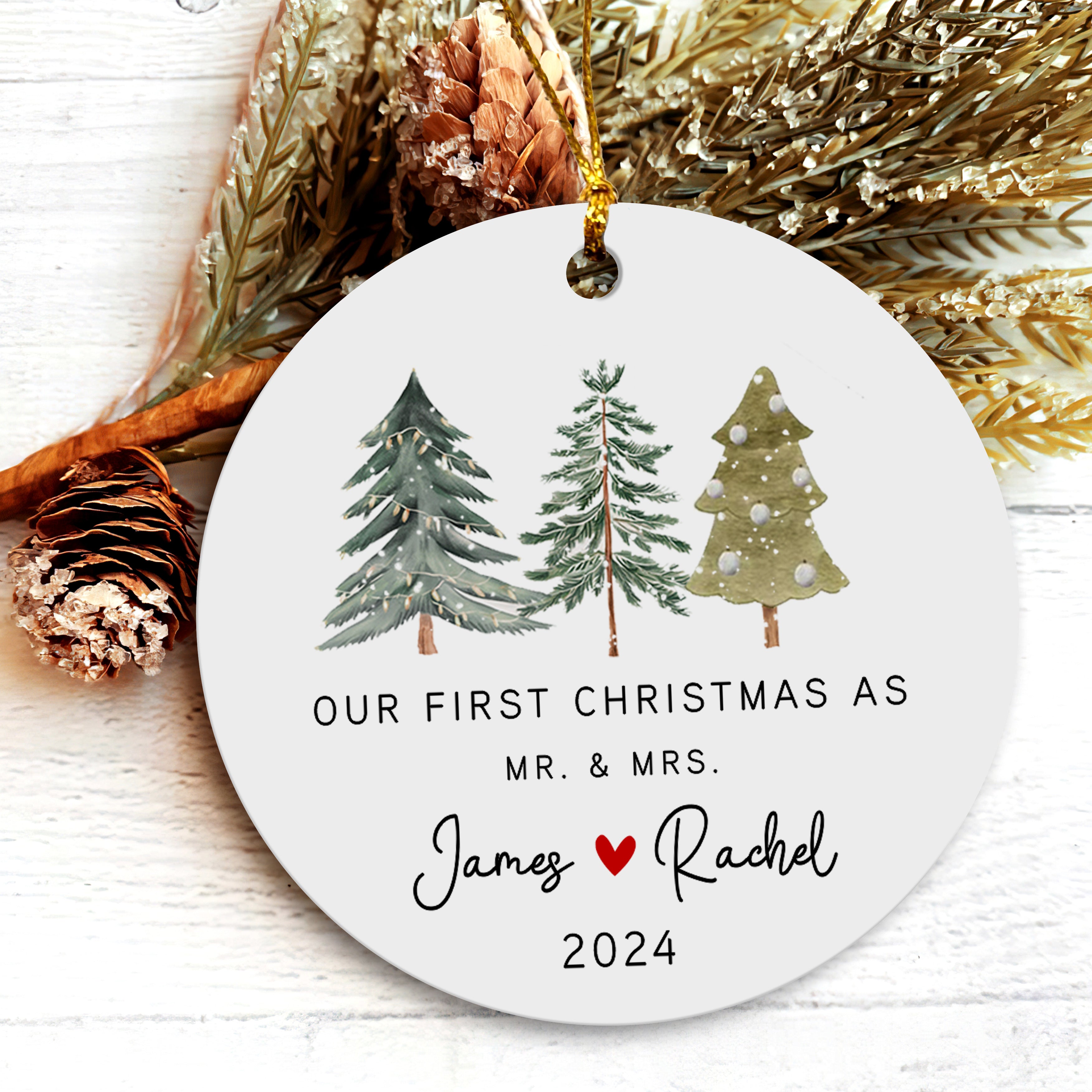 Our First Christmas as Mr and Mrs Personalized Ornament | Custom Name And Date Wedding Christmas Ornaments