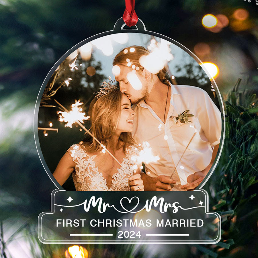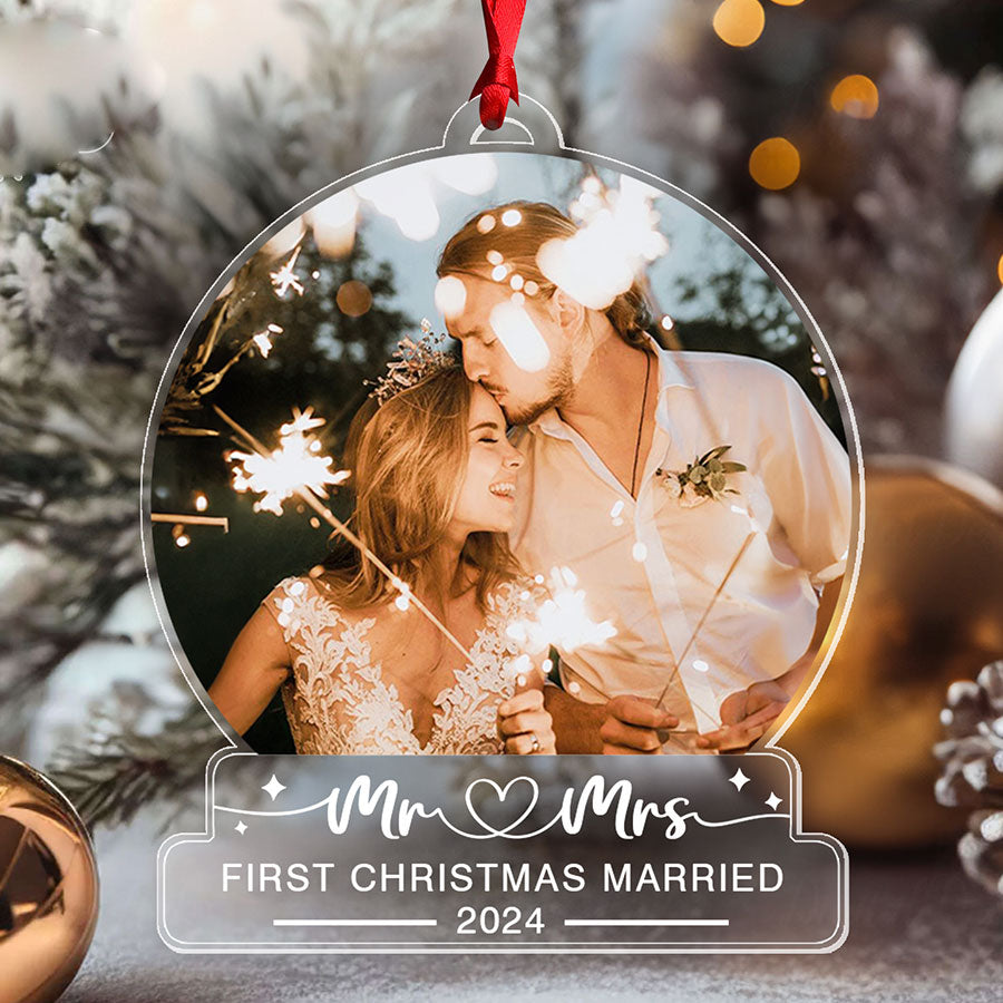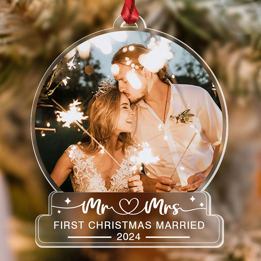 Don’t miss out on the opportunity to make this holiday season memorable. Order your our first christmas as mr & mrs ornament | custom photo first christmas married ornaments | acrylic ornament today and let it be a symbol of your journey together!