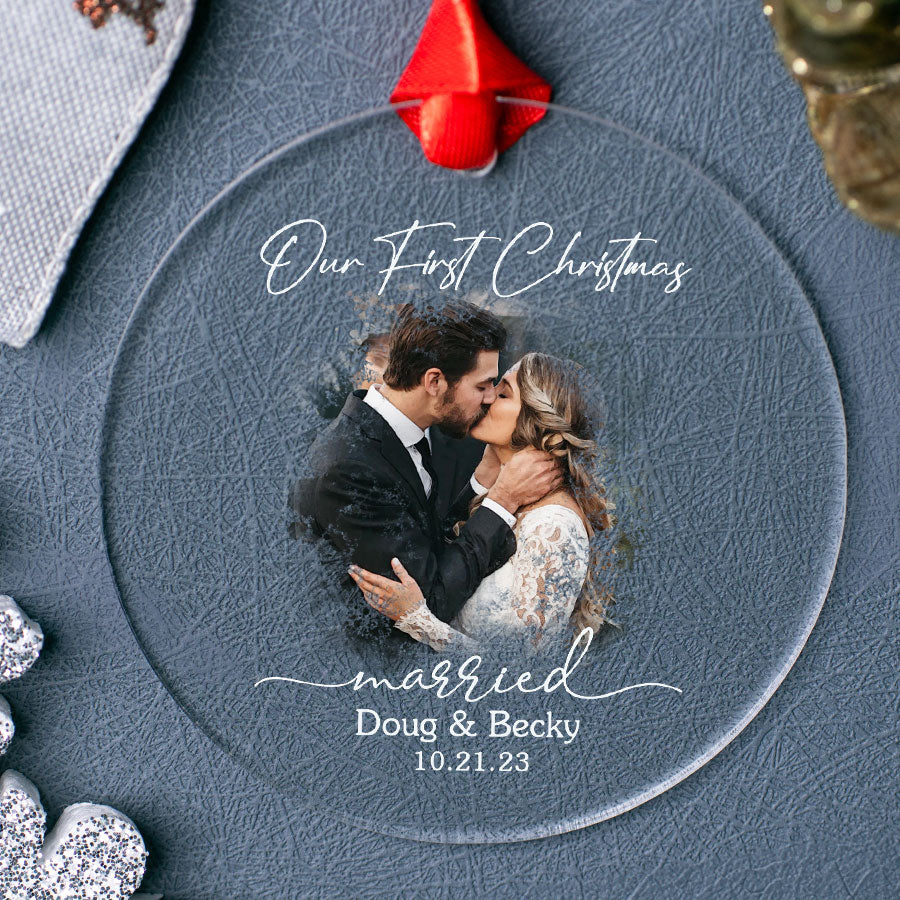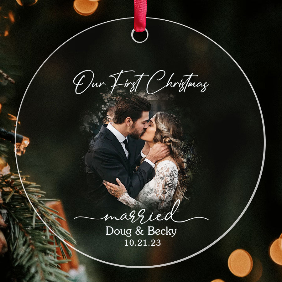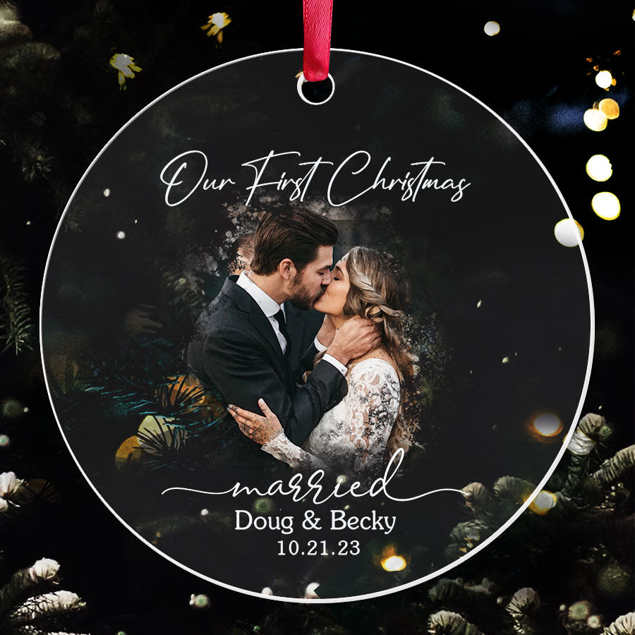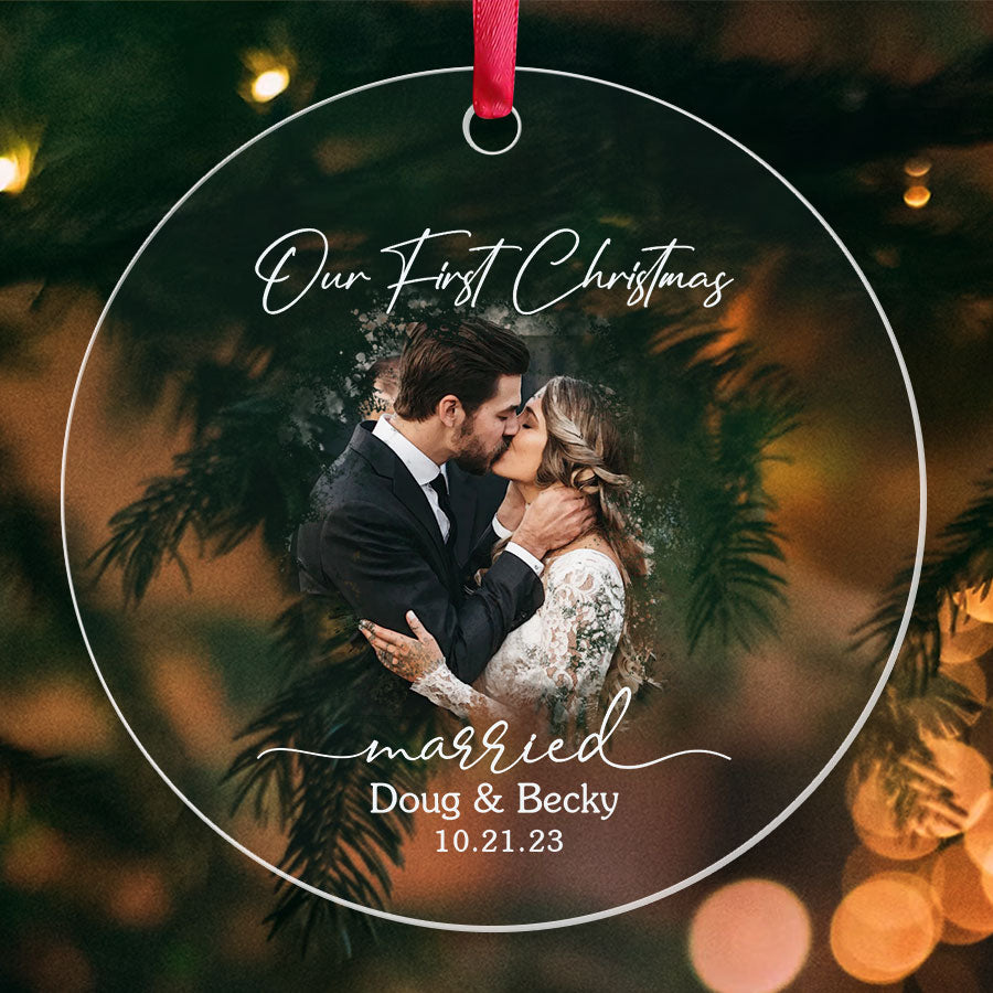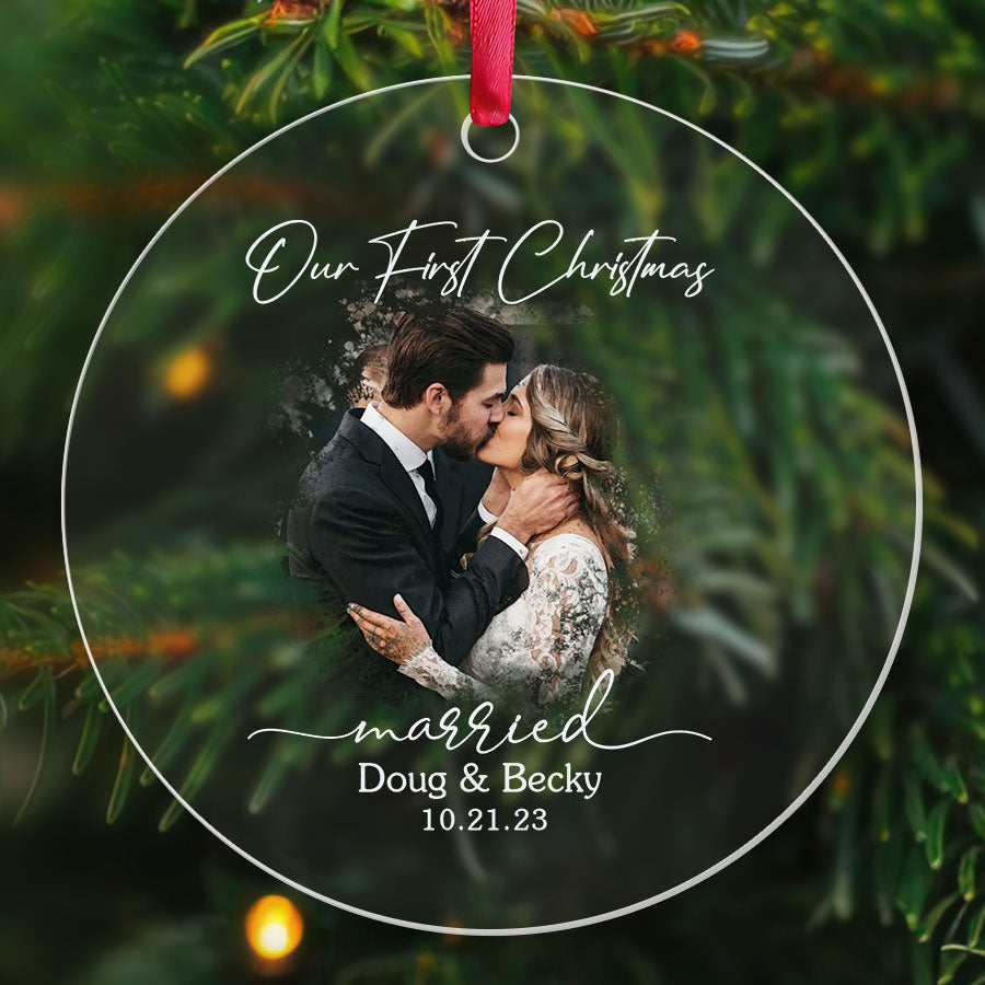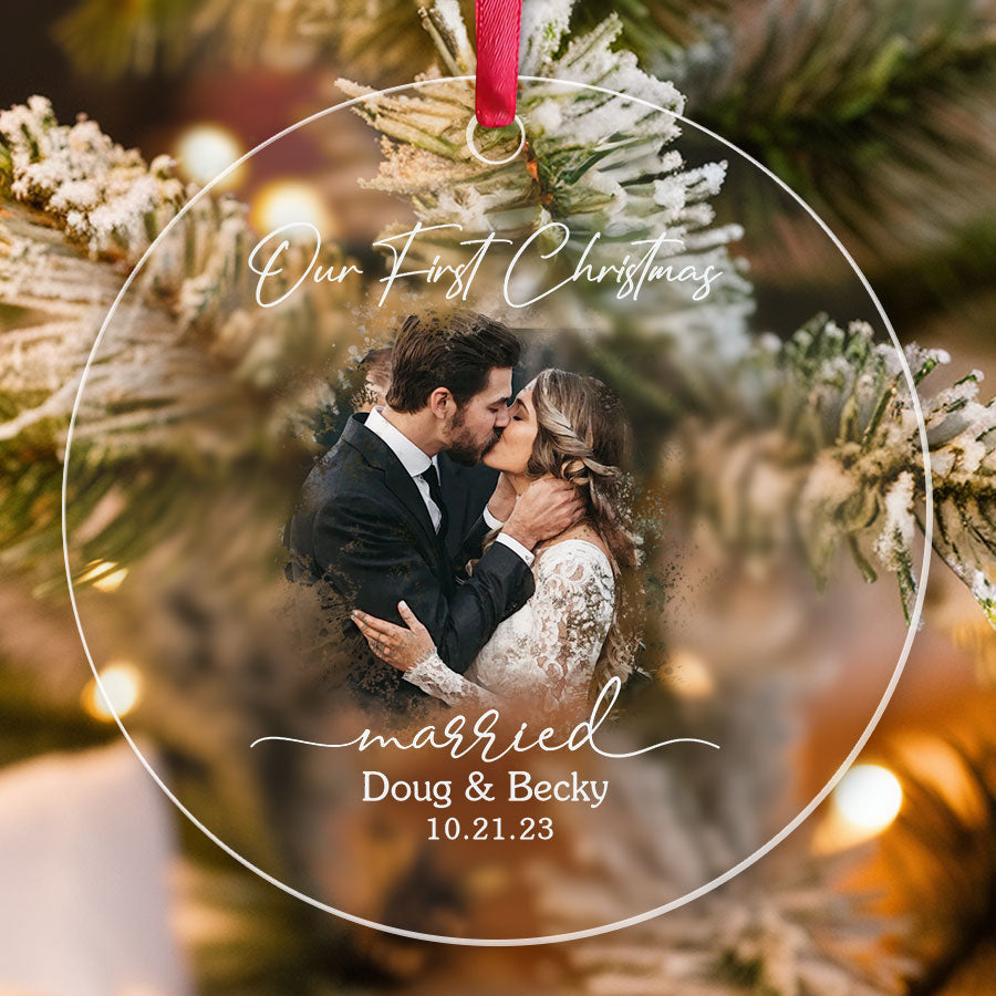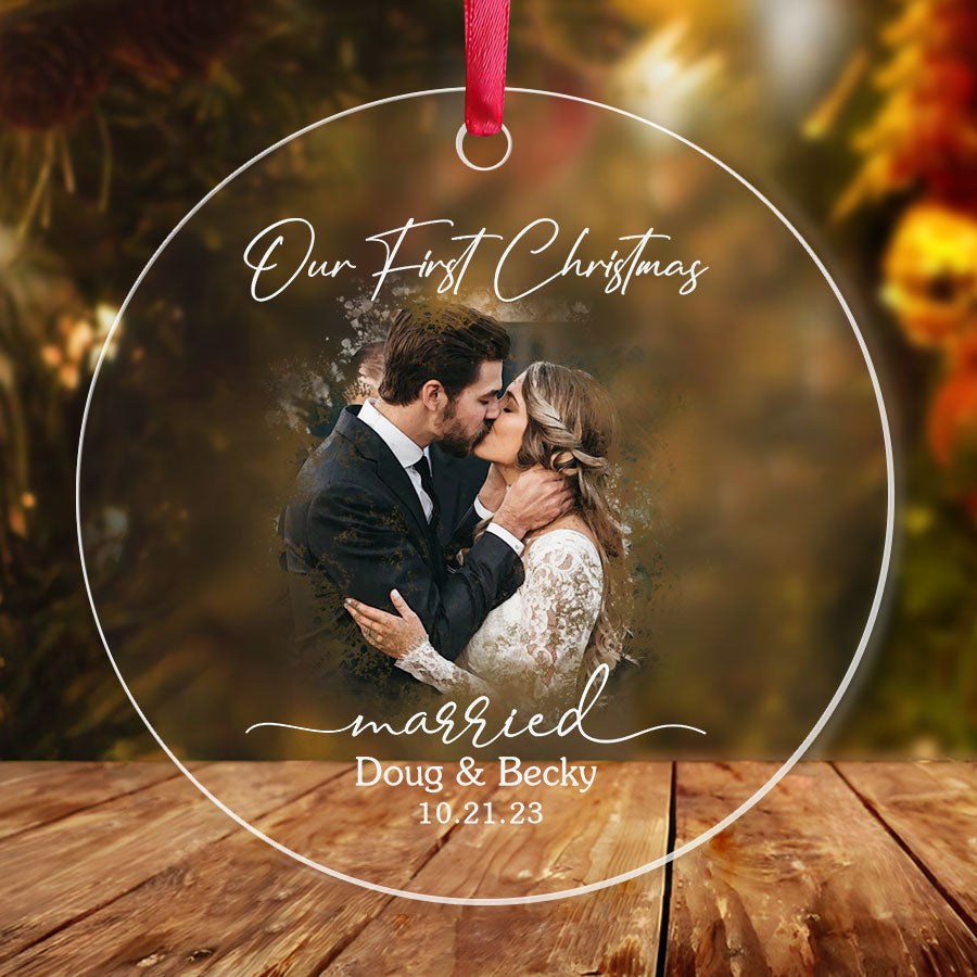Celebrate your First Christmas together with our our first christmas married ornament | custom photo acrylic ornament for couple | circle shape designed specifically for couples! These beautiful ornaments are not just decorations; they are cherished keepsakes that capture the magic of your love story.
