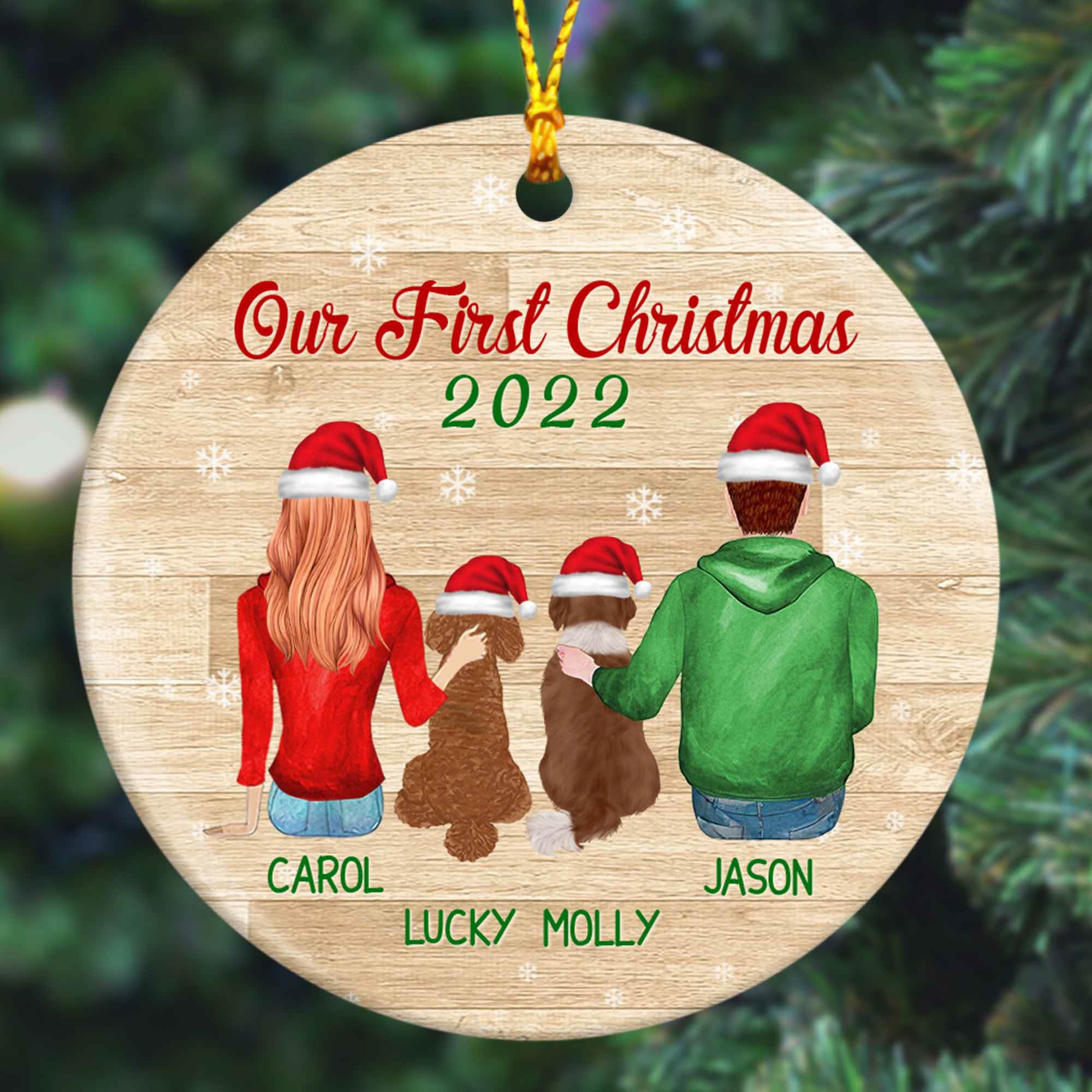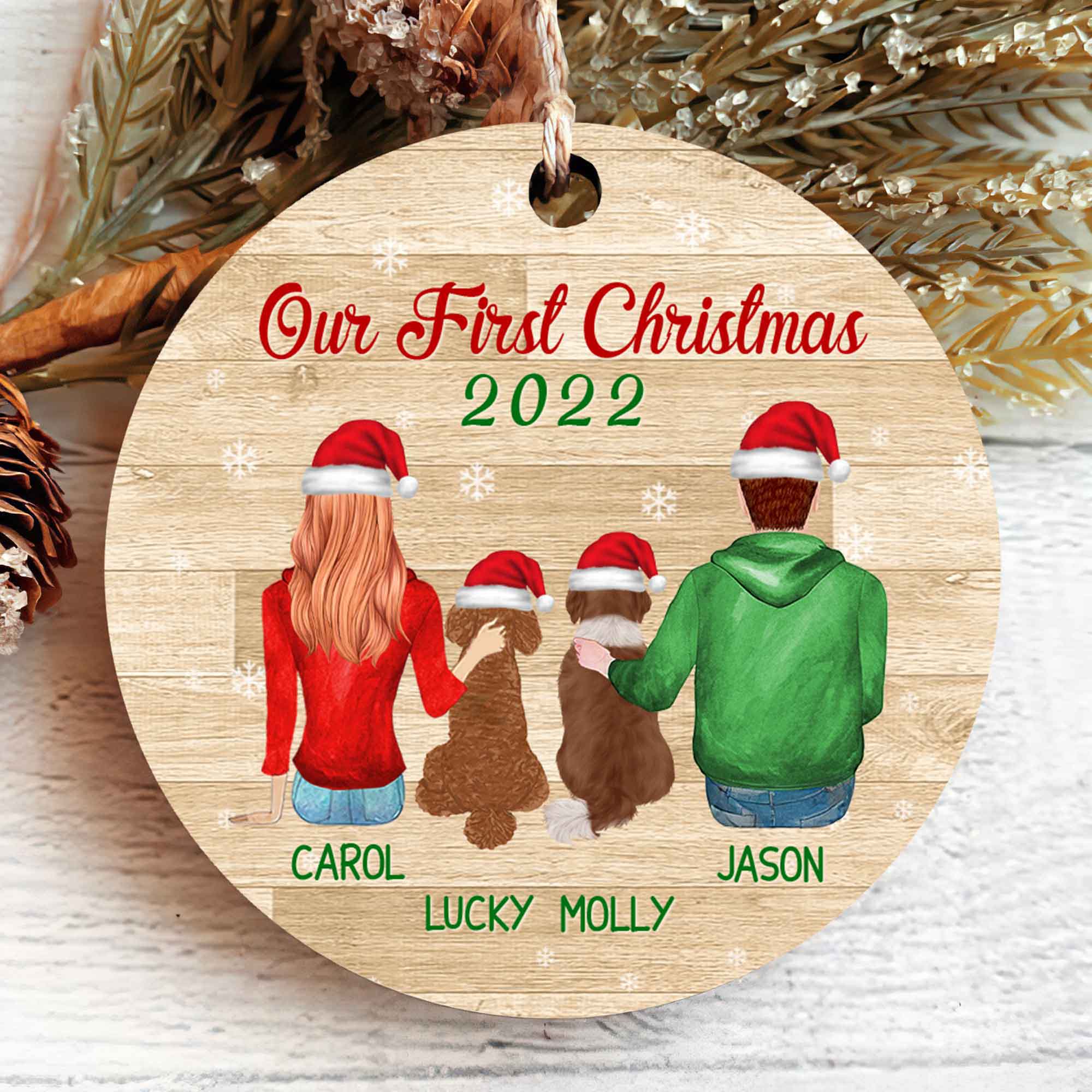 Custom Valentines Personalized Couples Christmas Ornaments, Our First Christmas Together Ornament, Couples Ornaments with Dog
