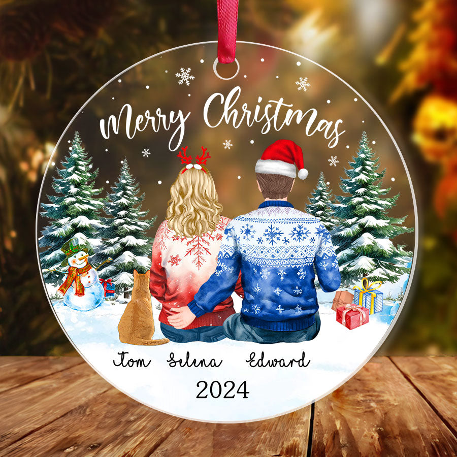 First Christmas Together Ornament | Personalized Couple Acrylic Ornament With Cat | Circle Shape
