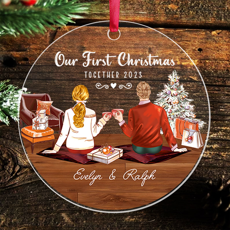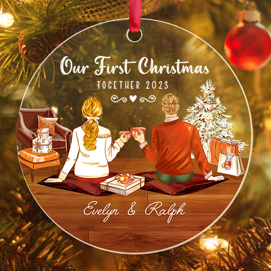 This our first christmas together ornament is a subtle yet profound way to keep the essence of your bond on top of your mind. Each time you catch a glimpse of this ornament proudly displayed in your home, you'll be reminded of the warmth, trust, and companionship that makes your relationship special. It's a poignant symbol of the unspoken promises you've made to be there for each other through all of life's ups and downs. This gift is the perfect personalized Christmas ornaments for couples for the ones you love. You can choose from a wide range of Personalized Christmas Ornaments, each of which can be customized with the name or image of your favorite people.