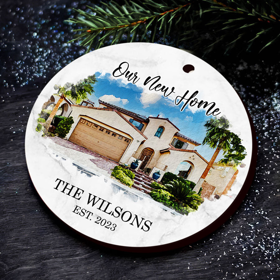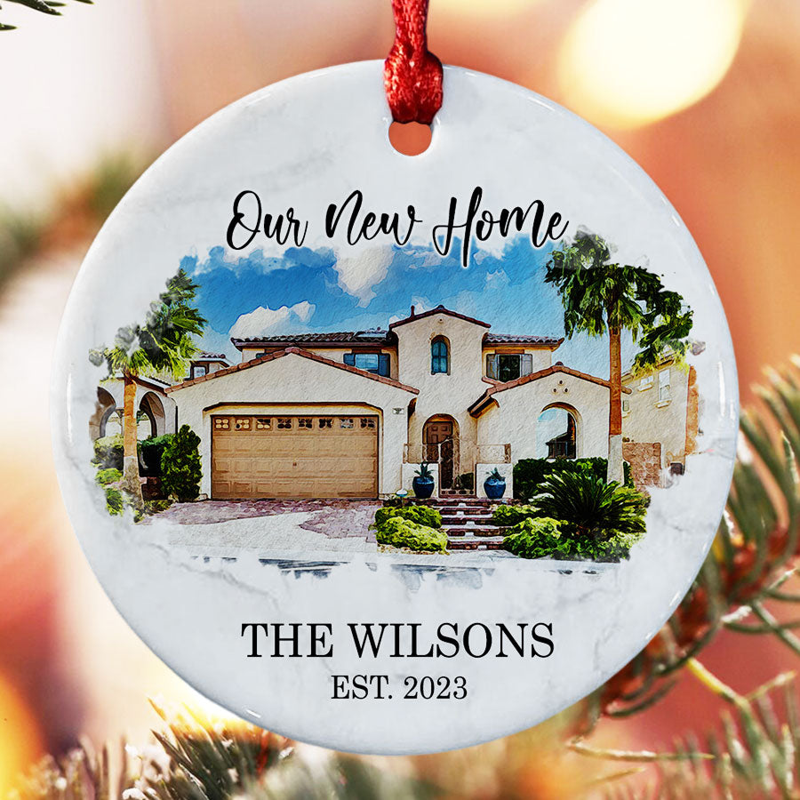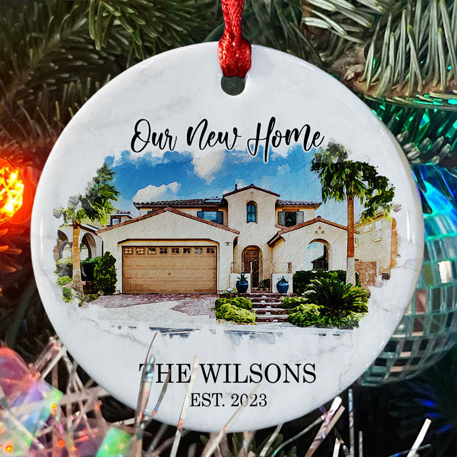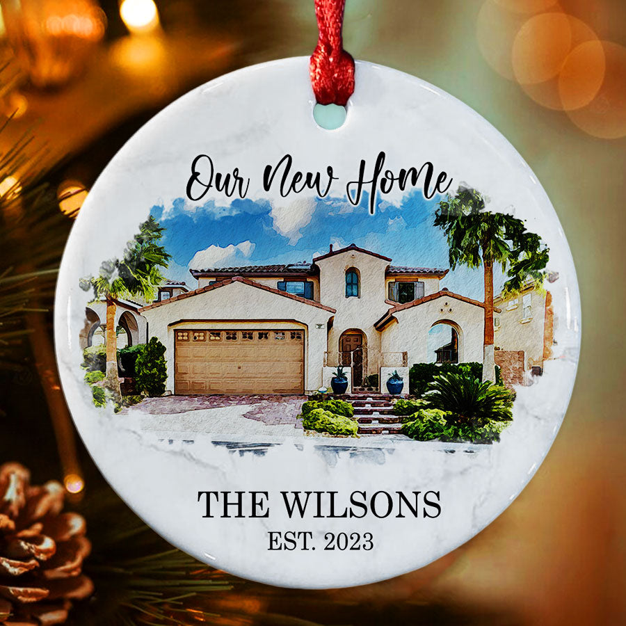 Our new home ornament | new home ornament personalized is more than just a decoration; it's a symbol of love, joy, and new beginnings. Whether you're looking for a delightful addition to your own home or a thoughtful gift for your loved ones, this ornament is the perfect choice. These personalized new home ornaments are the perfect Personalized Christmas Ornaments to give for new home.