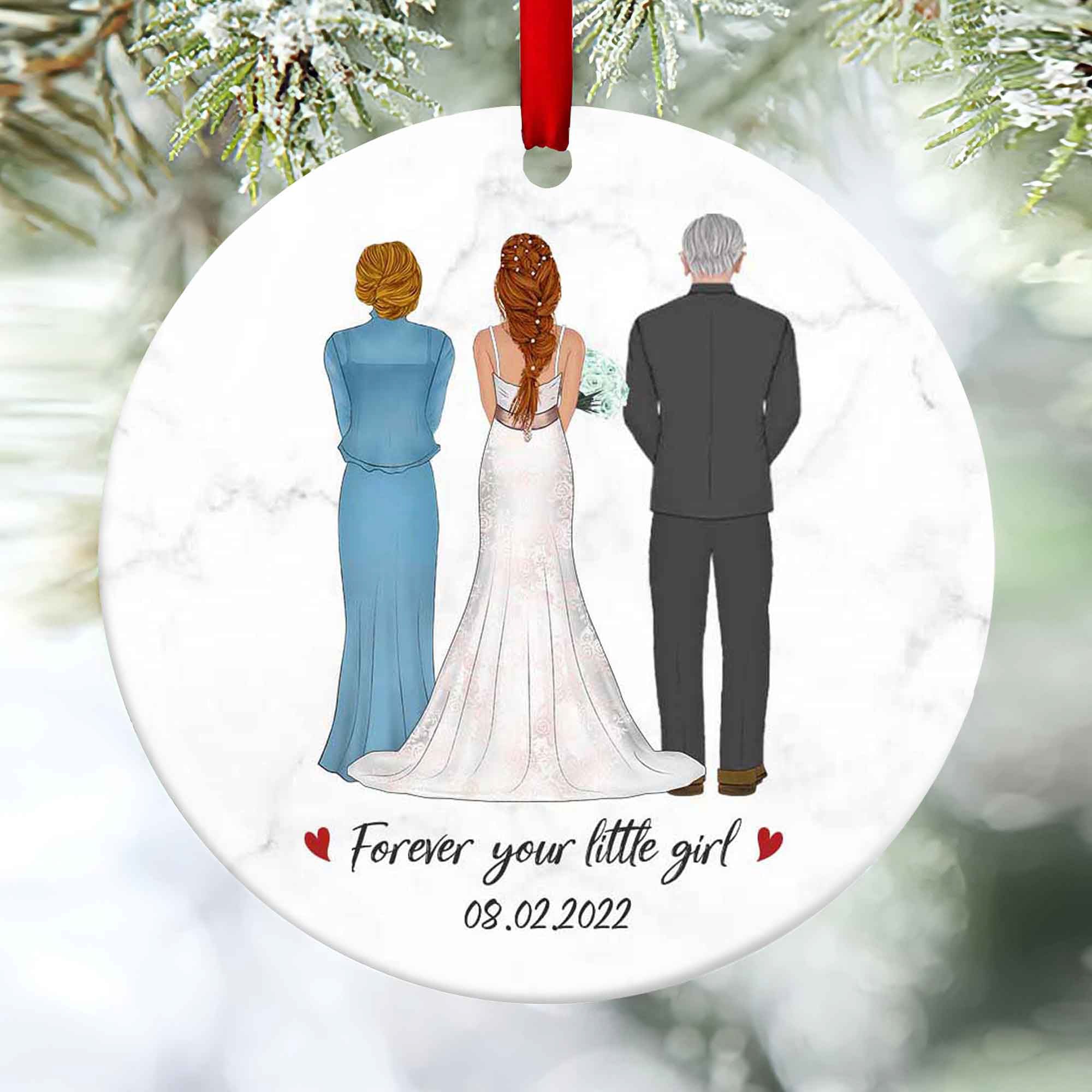 Clipart is the perfect way to add a personal touch to any gift, and there are plenty of beautiful designs available to suit any taste. Whether you're looking for something traditional or something more modern, you're sure to find the perfect clipart to make your Christmas gift extra special. And what could be more special than a parents of the bride gift custom ornament on her wedding day?