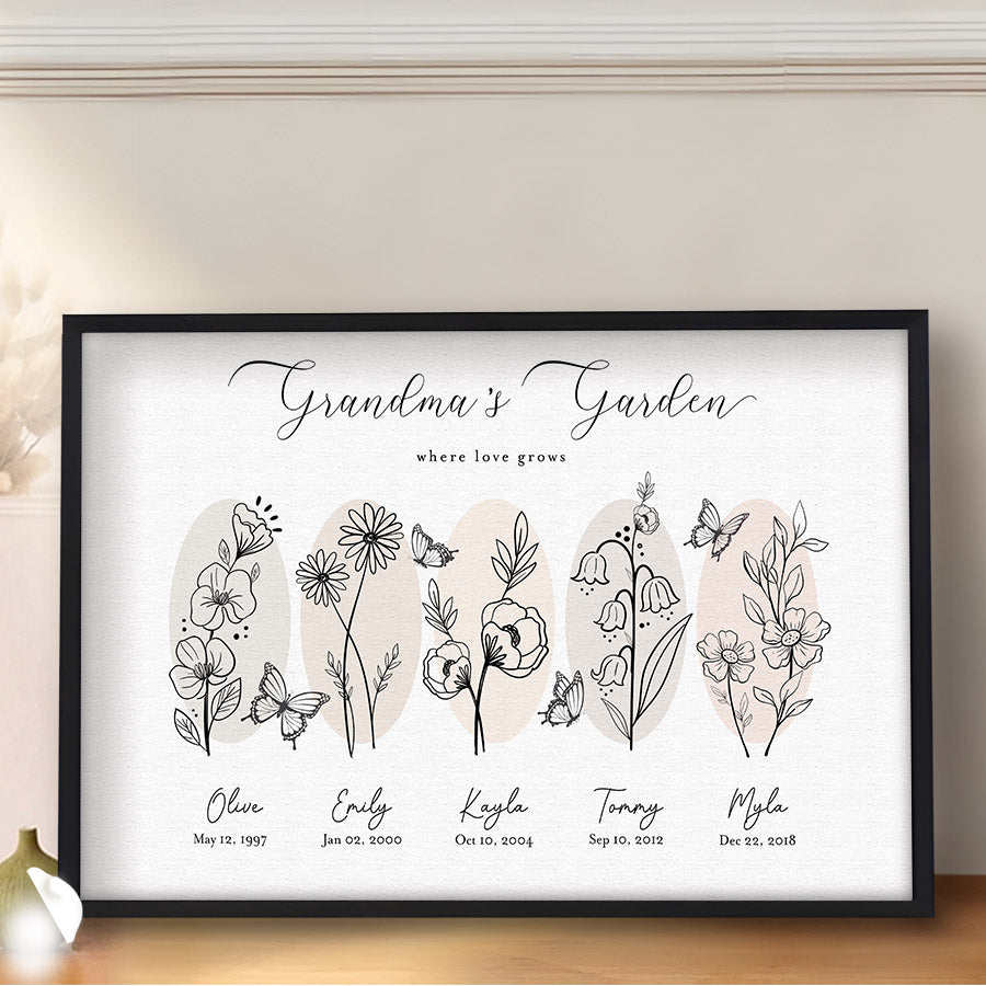 Celebrate your amazing Grandma this Mother's Day with our personal gifts for grandma | custom gifts for grandma from grandkids! This extraordinary grandma garden gift is more than just a piece of art; it's a heartfelt tribute to the incredible woman who has made a lasting impact on your life.