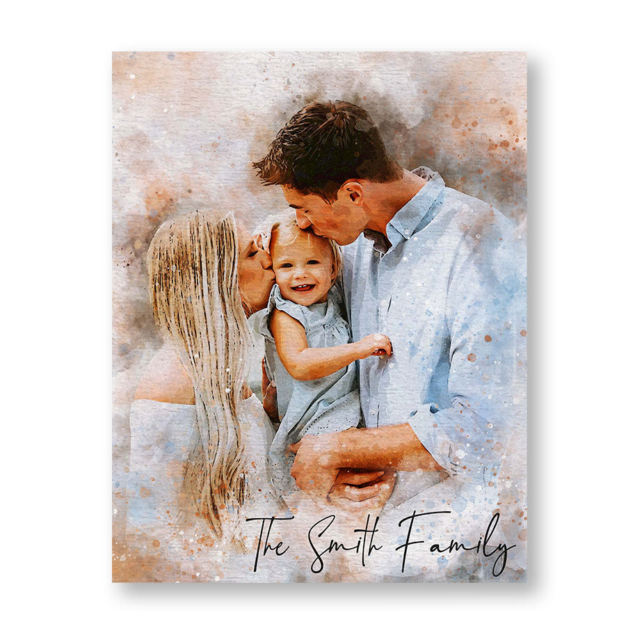 Treat the new dad in your life to personalised first fathers day gifts | custom watercolor family portrait from photo that commemorates the baby's arrival and his first Father's Day. Our personalized photo canvas is sure to bring a smile seeing little ones grow up before their eyes. Customize it FREE now - he will love displaying this treasured memory for many years to come.